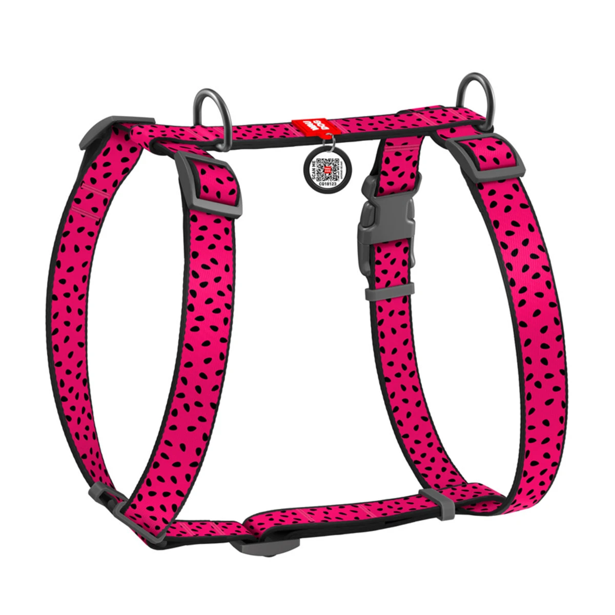 Анатомічна H-подібна шлея для собак WAUDOG Nylon з QR-паспортом, малюнок "Арбуз", пластиковий фастекс, М, Ш 20 мм, А 40-70, В 50-80