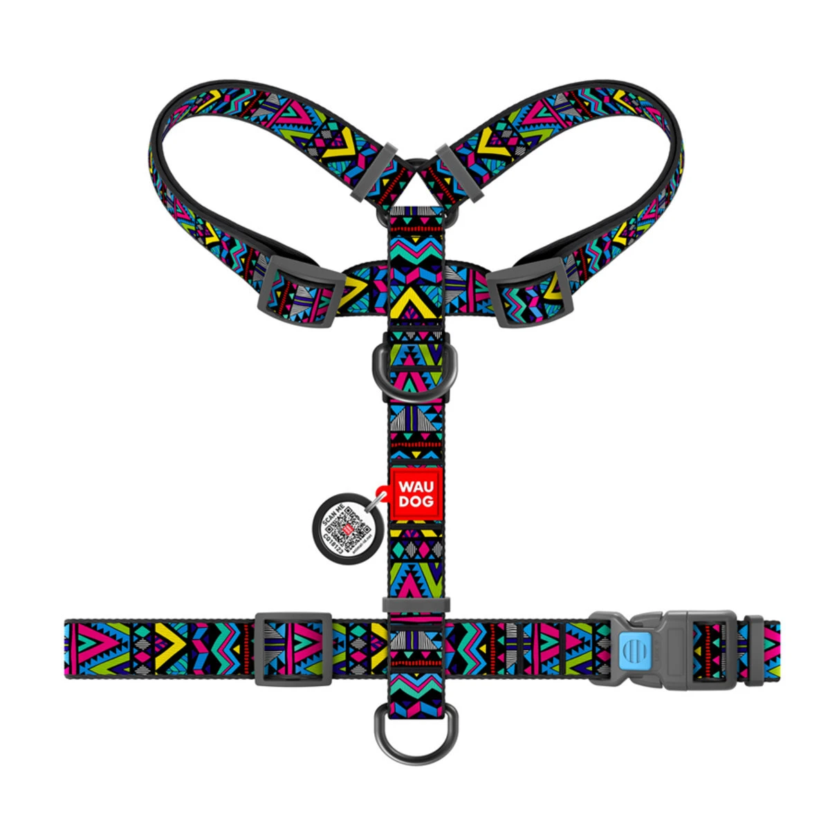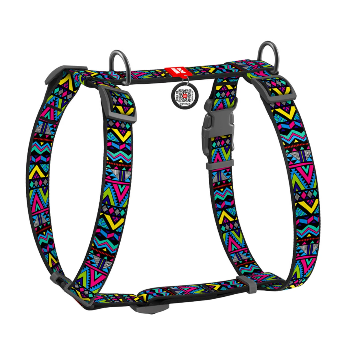Анатомічний H-образний нашийник для собак WAUDOG Nylon з QR-паспортом, малюнок "Інді", пластиковий фастекс, М, Ш 20 мм, А 40-70, В 50-80