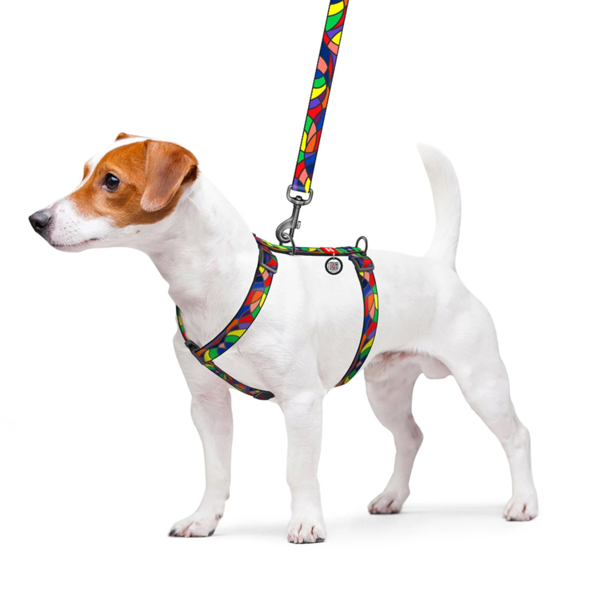 Анатомічний H-образний нашийник для собак WAUDOG Nylon з QR-паспортом, малюнок "Вітраж", пластиковий фастекс, S, Ш 15 мм, A 30-40, B 30-50