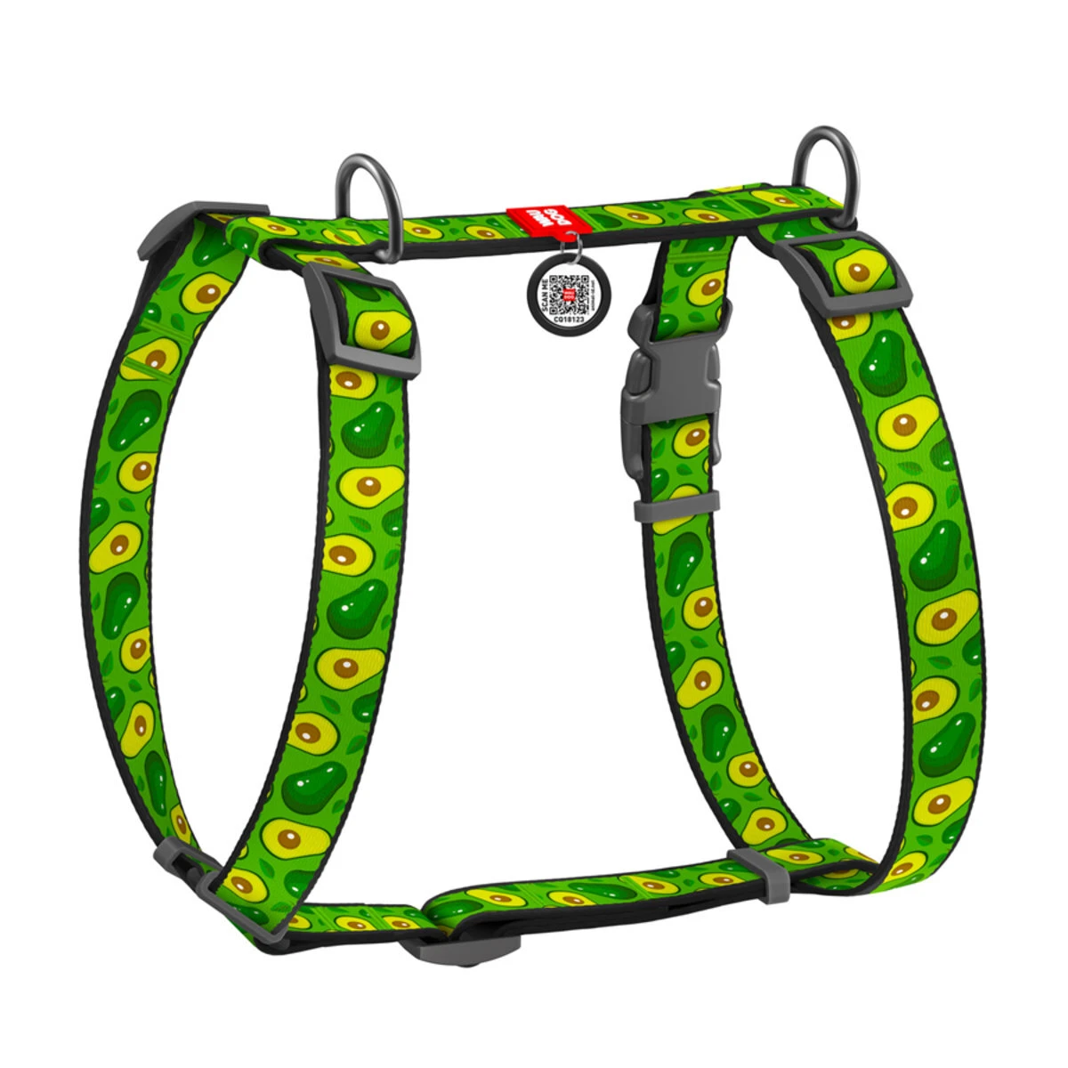 Анатомічний H-подібний нашийник для собак WAUDOG Nylon з QR-паспортом, малюнок "Авокадо", пластиковий фастекс, М, Ш 20 мм, А 40-70, В 50-80