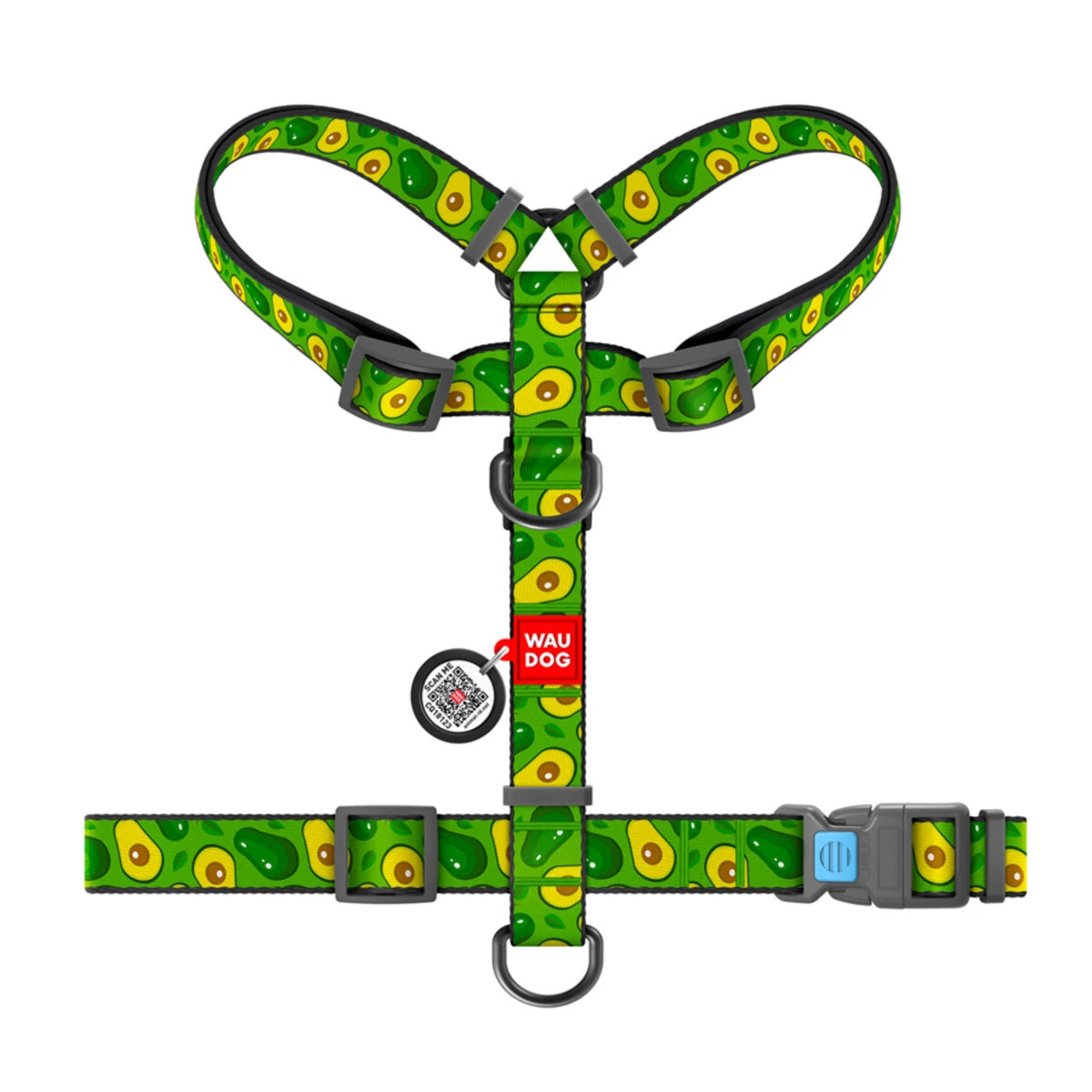Анатомічний H-подібний нашийник для собак WAUDOG Nylon з QR-паспортом, малюнок "Авокадо", пластиковий фастекс, S, Ш 15 мм, A 30-40, B 30-50