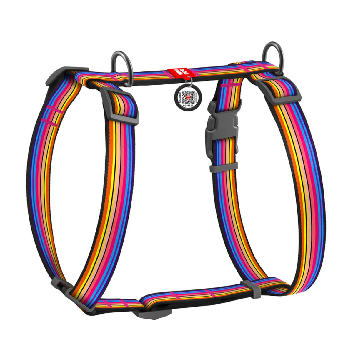 Анатомічний H-подібний нашийник для собак WAUDOG Nylon з QR-паспортом, малюнок "Лінія 1", пластиковий фастекс, L, Ш 25 мм, А 50-90, В 60-100
