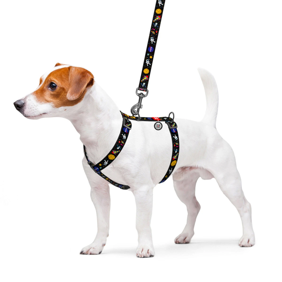 Анатомічний H-подібний нашийник для собак WAUDOG Nylon з QR-паспортом, малюнок "NASA", пластиковий фастекс, L, Ш 25 мм, А 50-90, В 60-100