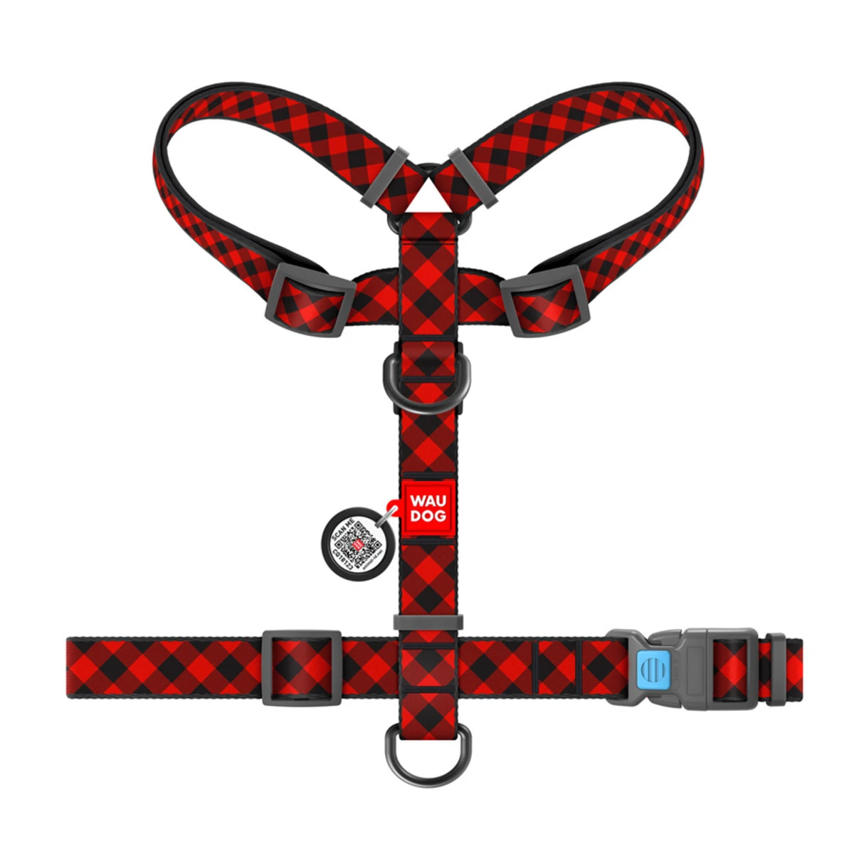 Анатомічний H-подібний нашийник для собак WAUDOG Nylon з QR-паспортом, малюнок "Шотландка червона", пластиковий фастекс, L, Ш 25 мм, А 50-90, В 60-100