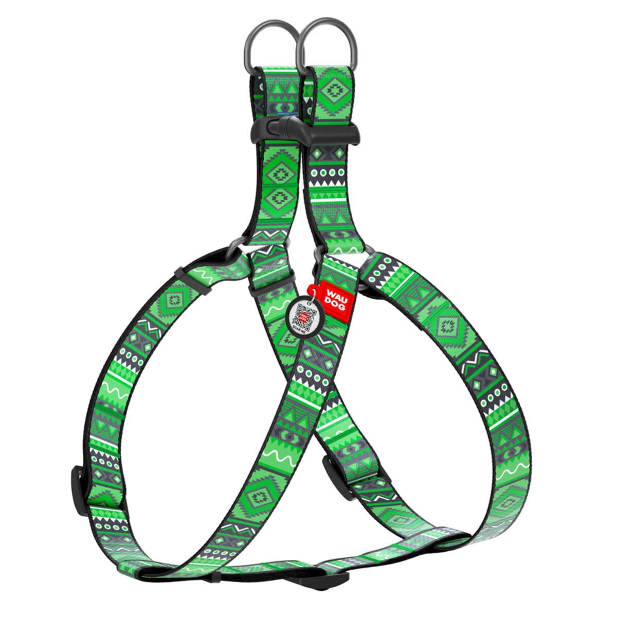 Анатомічний нашийник для собак WAUDOG Nylon з QR паспортом, малюнок "Етно зелений", пластиковий фастекс, Ш 25 мм, Дл 60-90 см