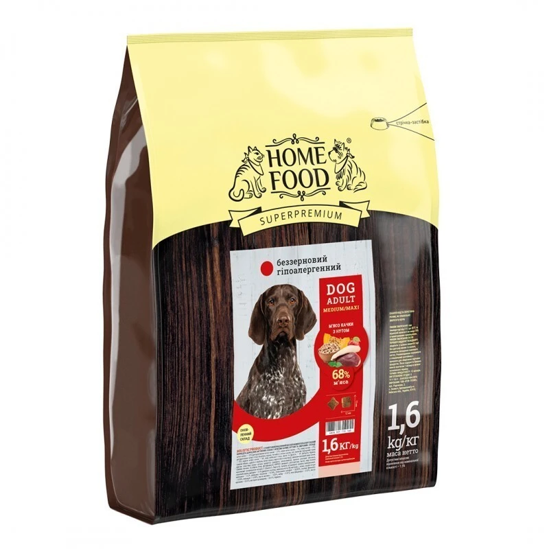 В основі гіпоалергенного корму — натуральне м'ясо качки (свіже та дегідратоване), яке є джерелом тваринних білків. Наявність нуту та овочів забезпечує необхідну кількість клітковини, що позитивно впливає на ШКТ. Завдяки беззерновій формулі, корм можна давати тваринам, у яких алергія на злакову групу.