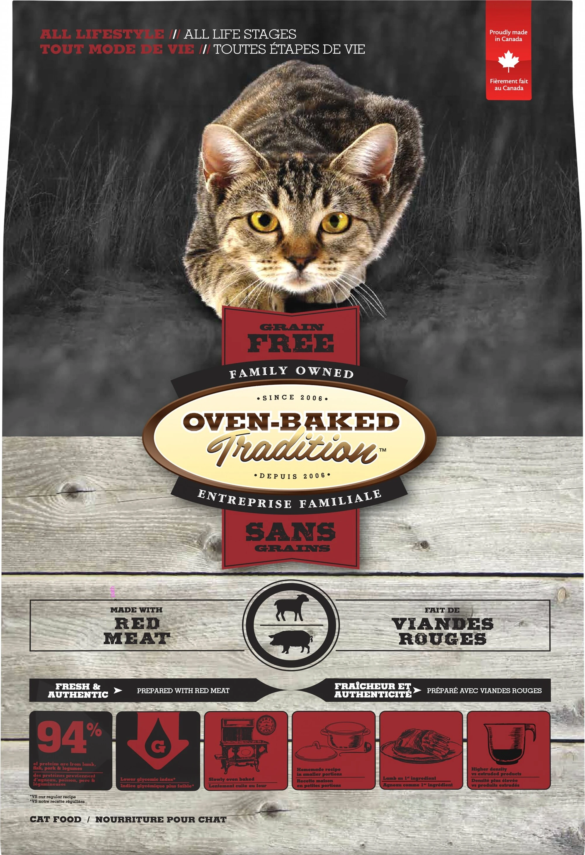 Oven-Baked Tradition повністю збалансований беззерновий сухий корм для кішок з червоним м'ясом.