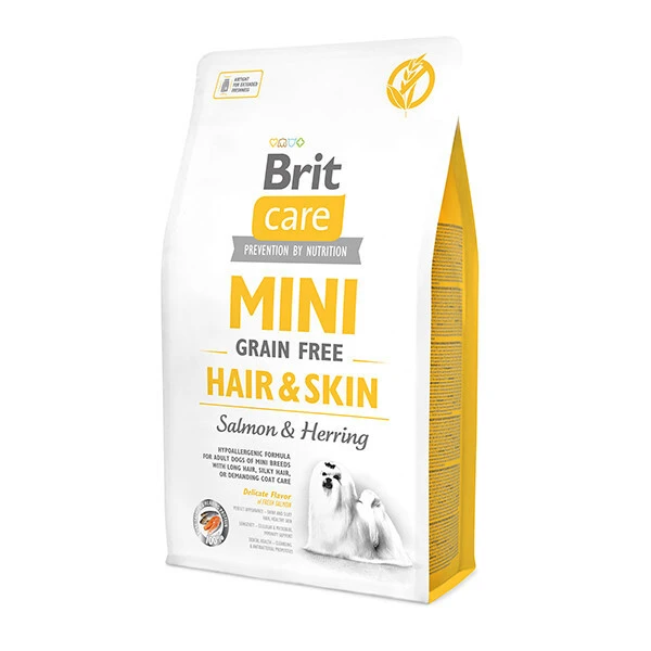 Со вкусом лосося. Гипоаллергенная беззерновая формула для взрослых собак мини-пород (до 10кг), с длинной или шелковистой шерстью, а также для собак, которые требуют особенного ухода за шерстью.