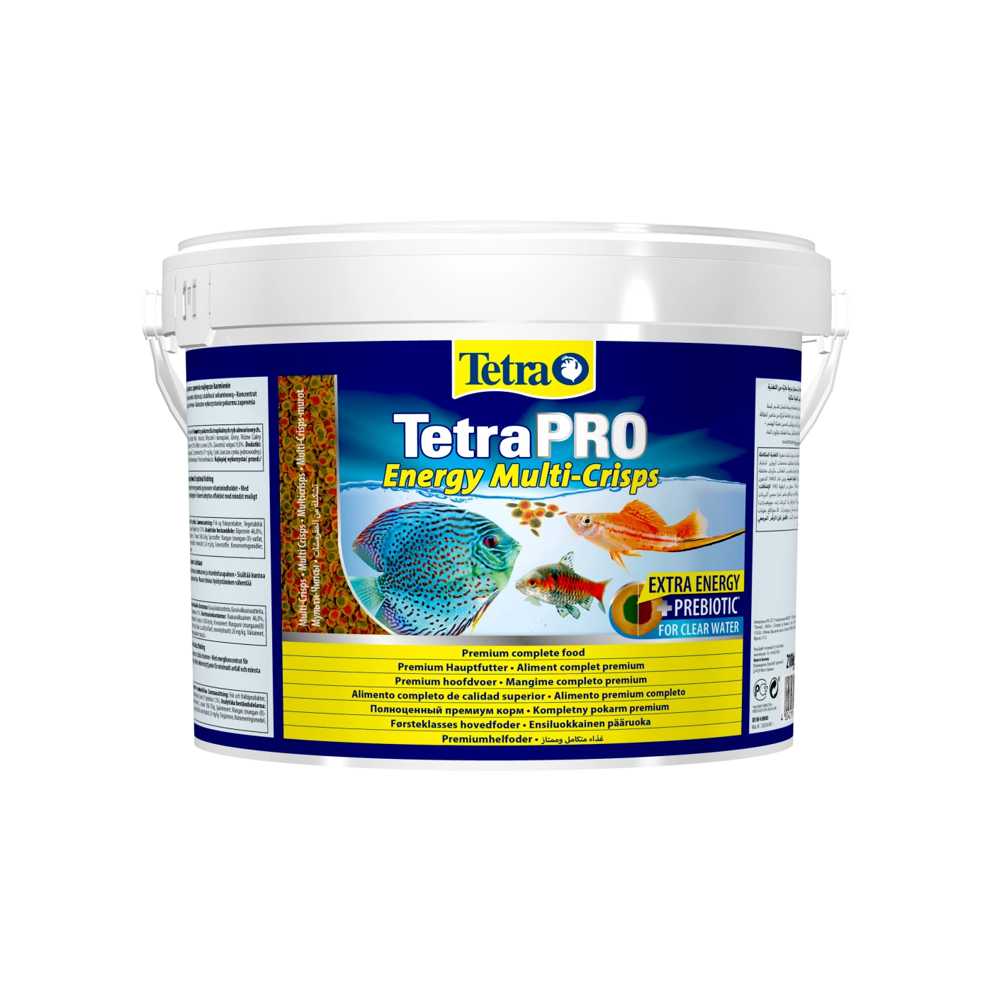 Містить два види чіпсів. Чіпси з червоною серцевиною містять енергетичні добавки та каротиноїди (рослинний екстракт і ракоподібні) для посилення інтенсивності забарвлення, чіпси з зеленою серцевиною містять енергетичні добавки та концентрат водоростей (Спіруліна) для зміцнення імунної системи риб. Корм Tetra Pro Energy містить риб'ячий жир; багатий вітамінами A, D, E, K та ненасиченими жирними кислотами.