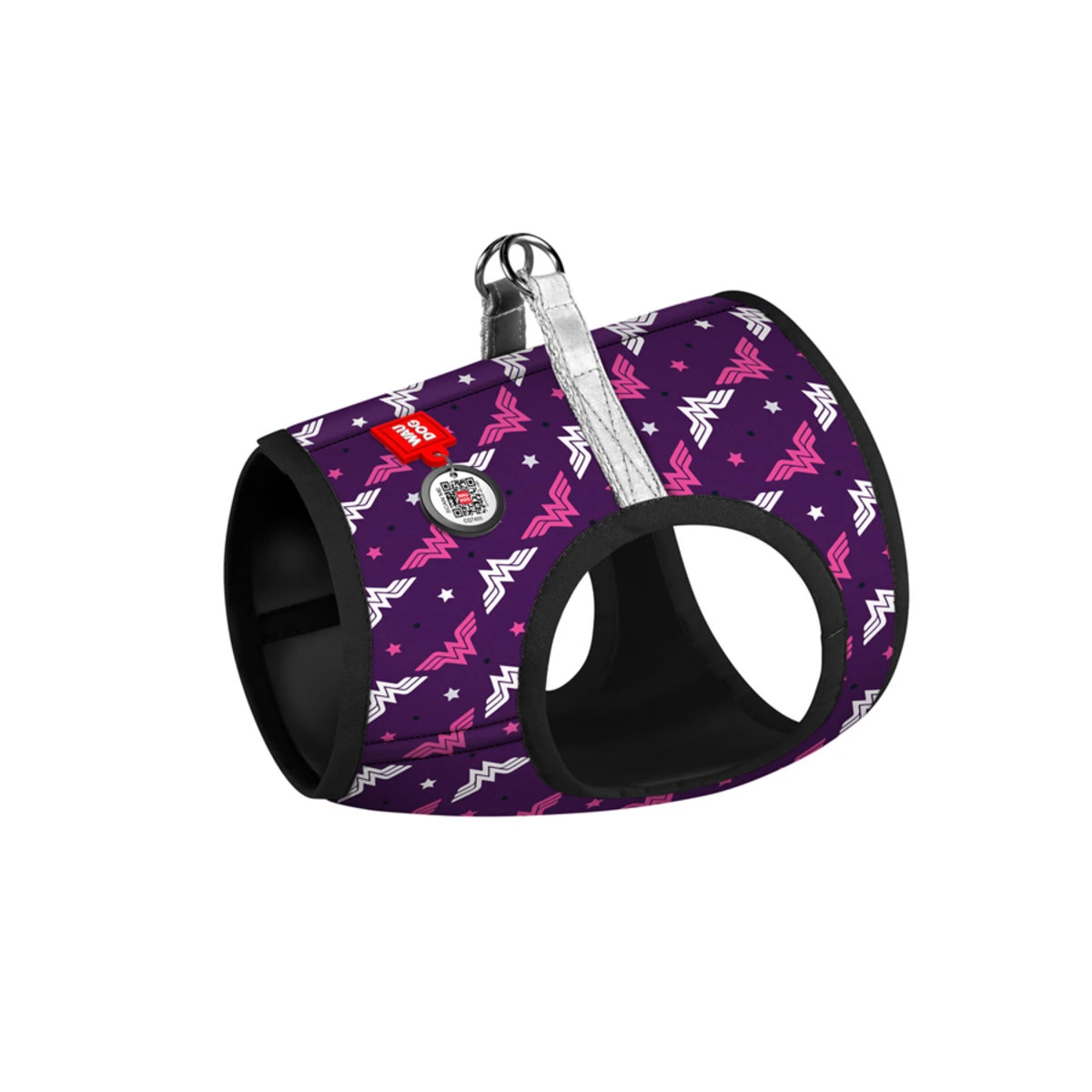 М'яка шлея для собак WAUDOG Clothes з QR паспортом, малюнок "Чудо-жінка фіолет", XS4, В 36-39 см, С 26-28 см