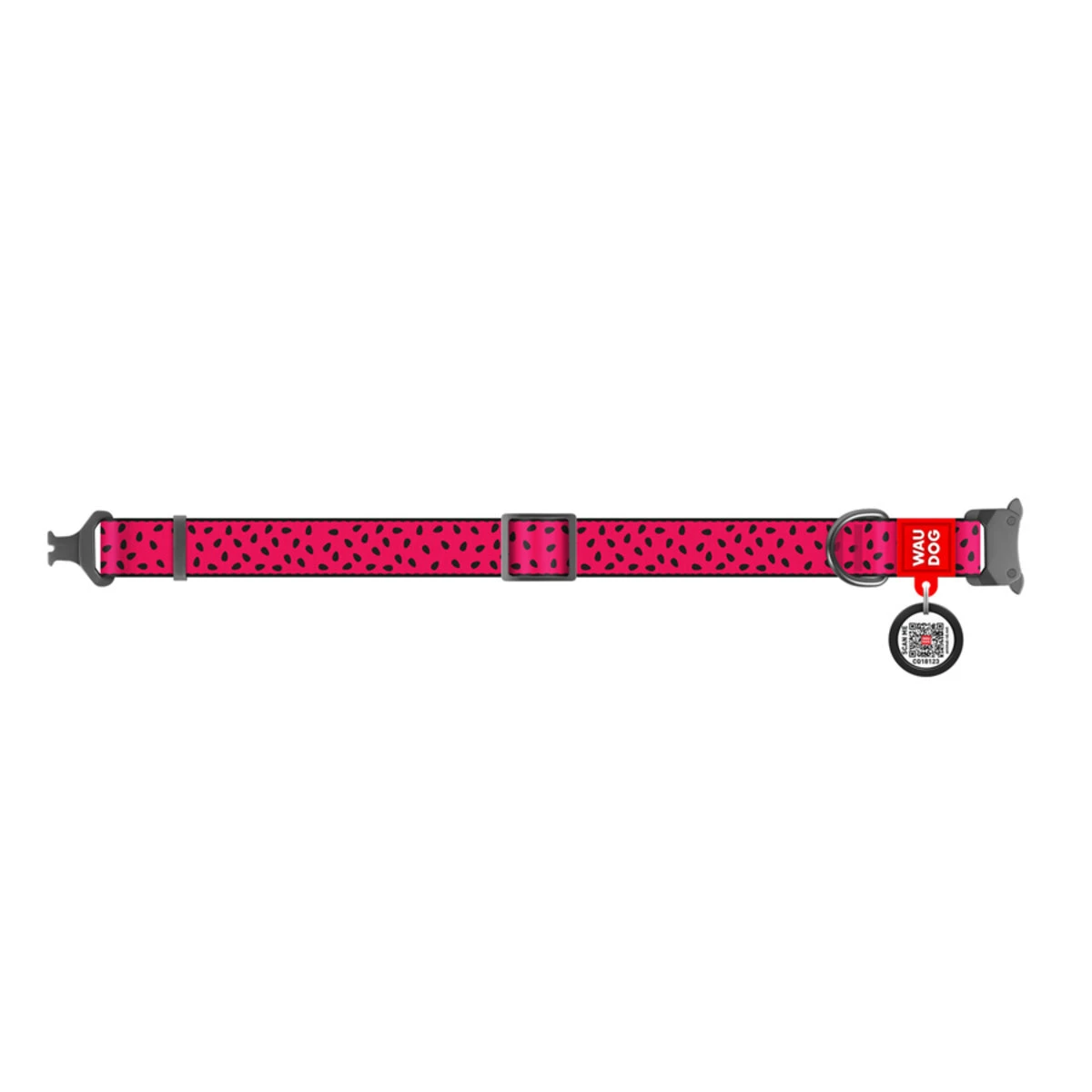 Нашийник для собак нейлоновий WAUDOG Nylon з QR паспортом, малюнок "Арбуз", металевий пряжка-фастекс, Ш 25 мм, Дл 35-58 см