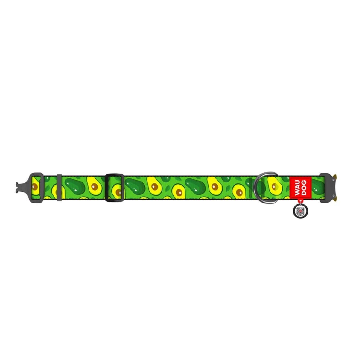 Нашийник для собак нейлоновий WAUDOG Nylon з QR паспортом, малюнок "Авокадо", металевий пряжка-фастекс, XXL, Ш 35 мм, Дл 43-70 см