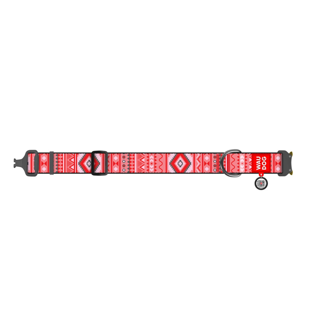Нашийник для собак нейлоновий WAUDOG Nylon з QR паспортом, малюнок "Етно червоний", металевий пряжка-фастекс, XXL, Ш 35 мм, Дл 43-70 см