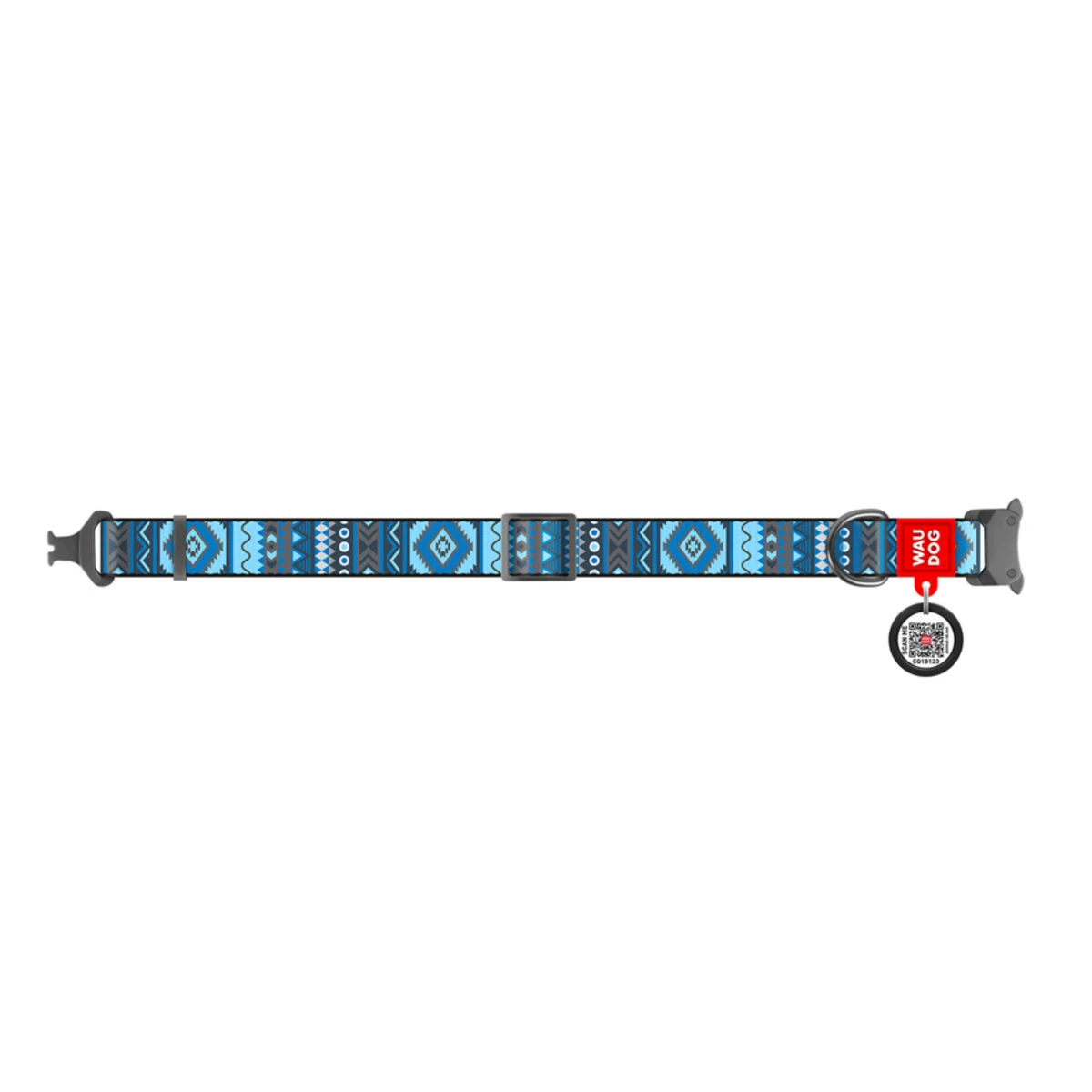 Нашийник для собак нейлоновий WAUDOG Nylon з QR паспортом, малюнок "Етно синій", металевий пряжка-фастекс, Ш 20 мм, Дл 24-40 см