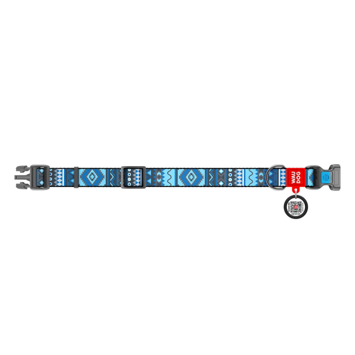 Нашийник для собак нейлоновий WAUDOG Nylon з QR паспортом, малюнок "Етно синій", пластиковий фастекс, Ш 25 мм, Дл 35-58 см