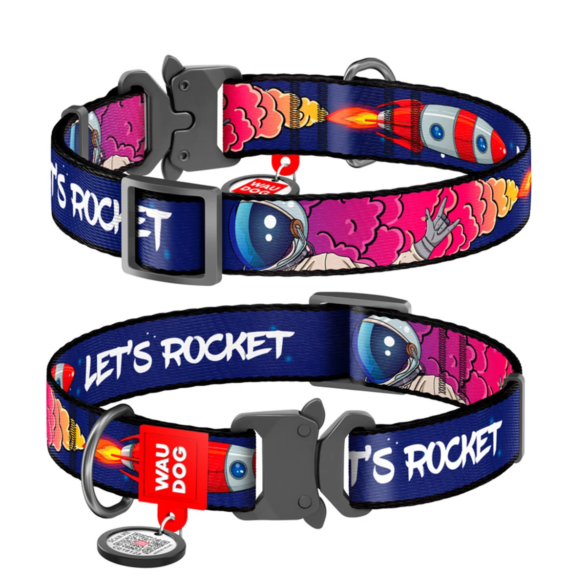 Нашийник для собак нейлоновий WAUDOG Nylon з QR-паспортом, малюнок "Космос. Ракета", металевий пряжка-фастекс, XL, Ш 25 мм, Дл 35-58 см