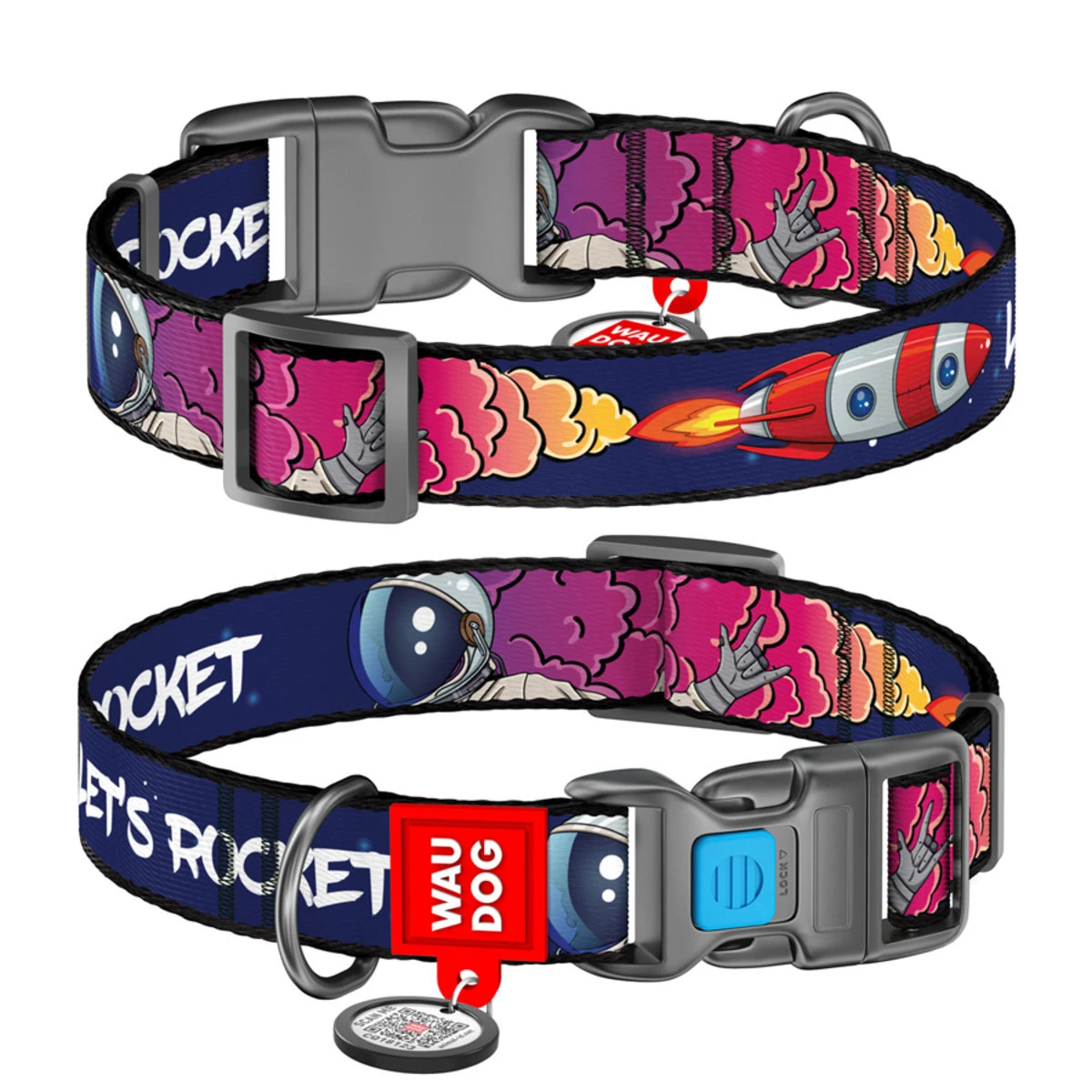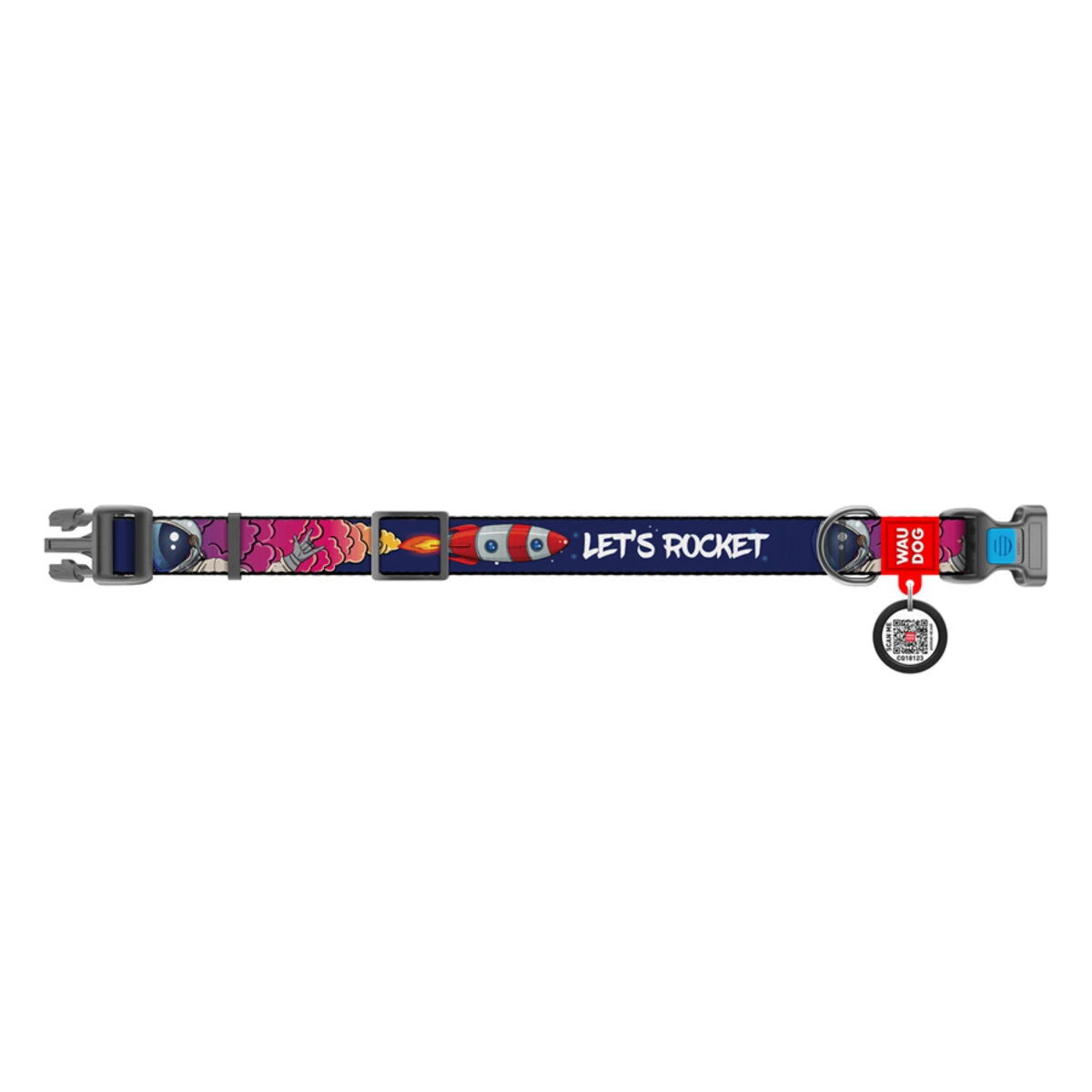 Нашийник для собак нейлоновий WAUDOG Nylon з QR-паспортом, малюнок "Космос. Ракета", пластиковий фастекс, XL, Ш 25 мм, Дл 35-58 см