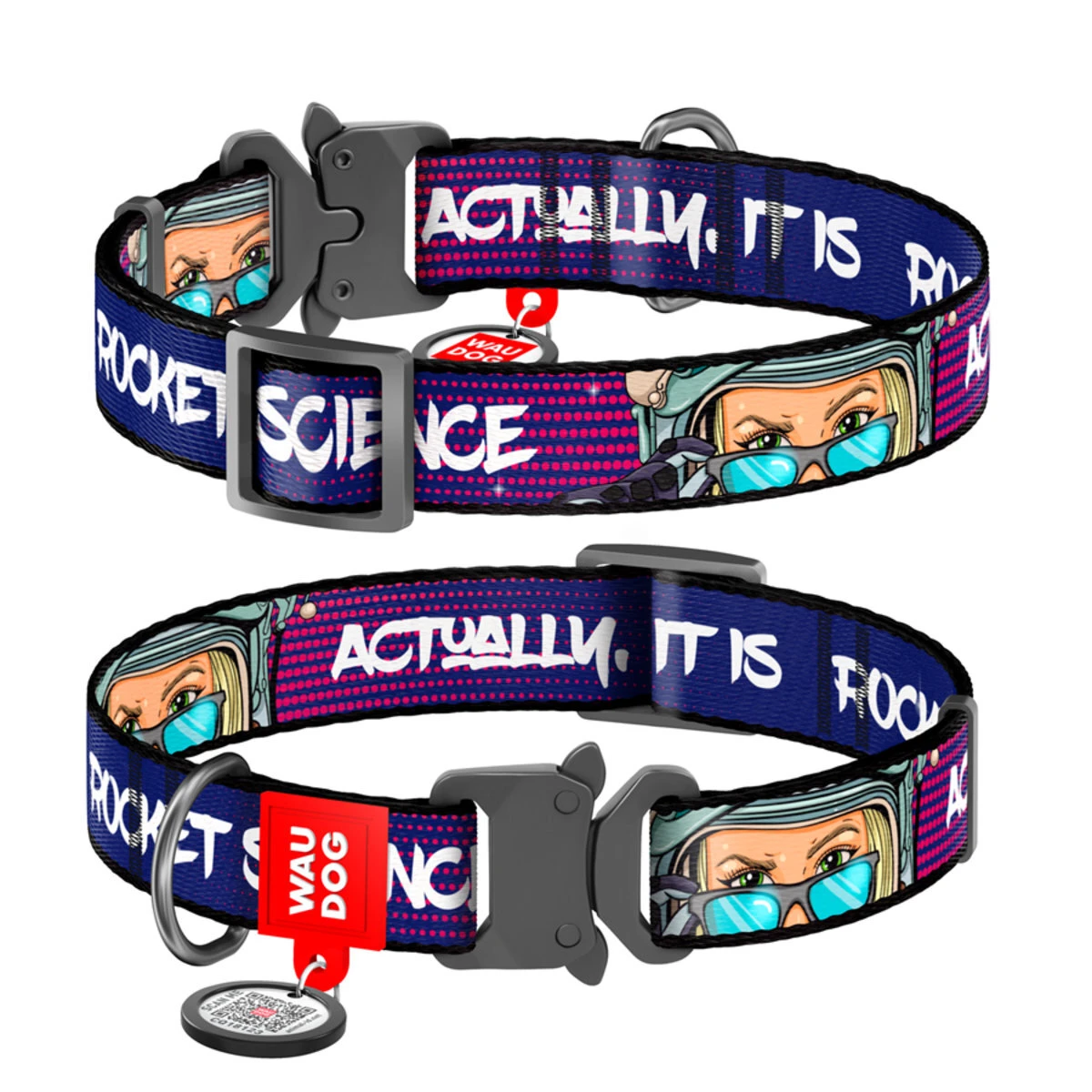 Нашийник для собак нейлоновий WAUDOG Nylon з QR-паспортом, малюнок "Космос. Ракетобудування", металевий пряжка-фастекс, L, Ш 25 мм, Дл 31-49 см