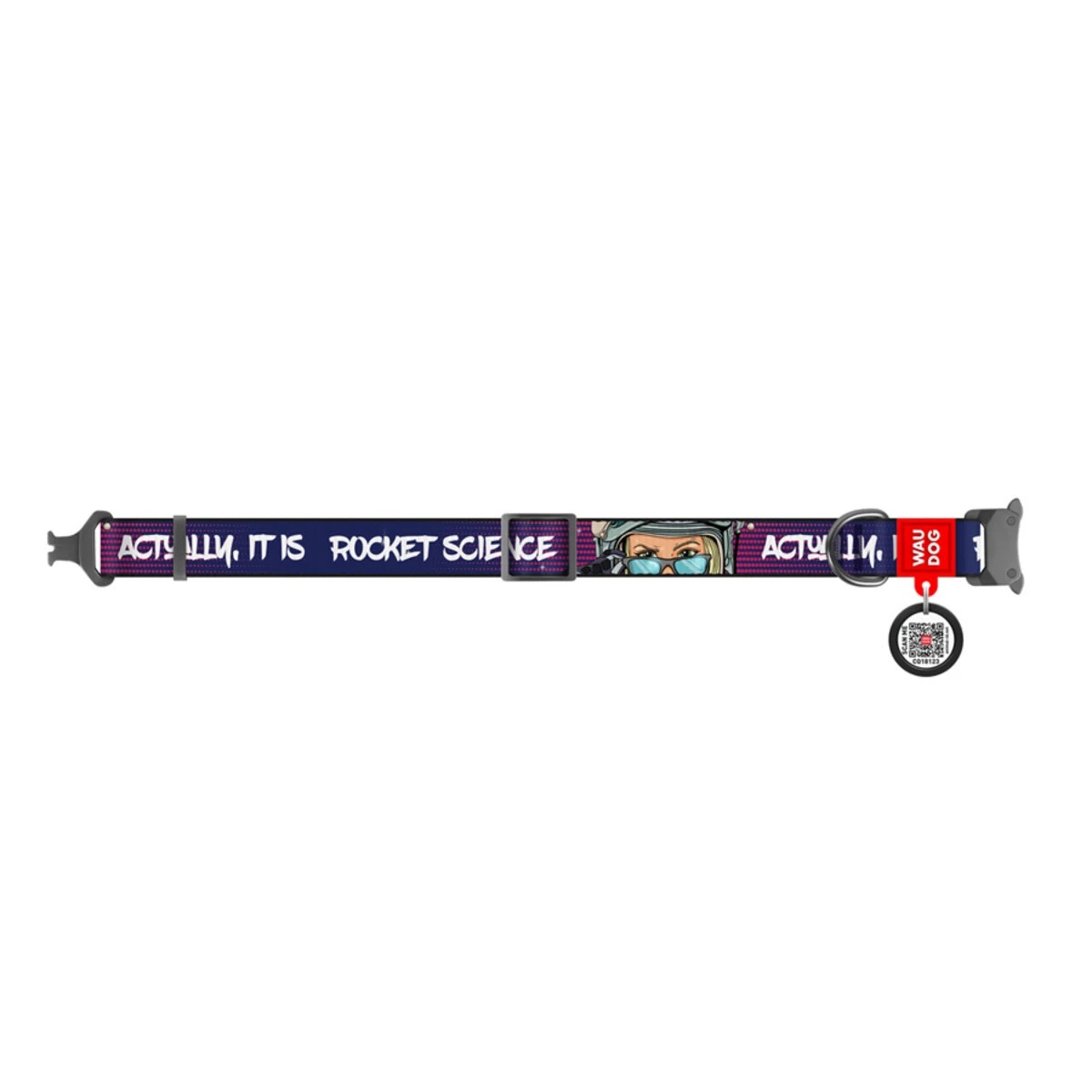 Нашийник для собак нейлоновий WAUDOG Nylon з QR-паспортом, малюнок "Космос. Ракетобудування", металевий пряжка-фастекс, S, Ш 15 мм, Дл 23-35 см