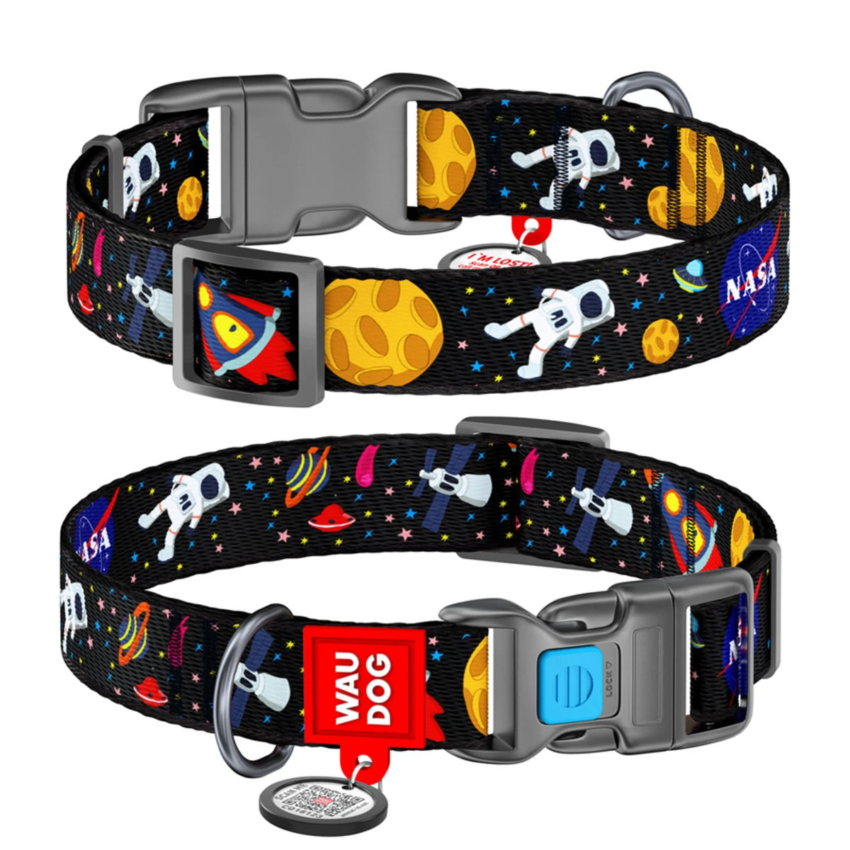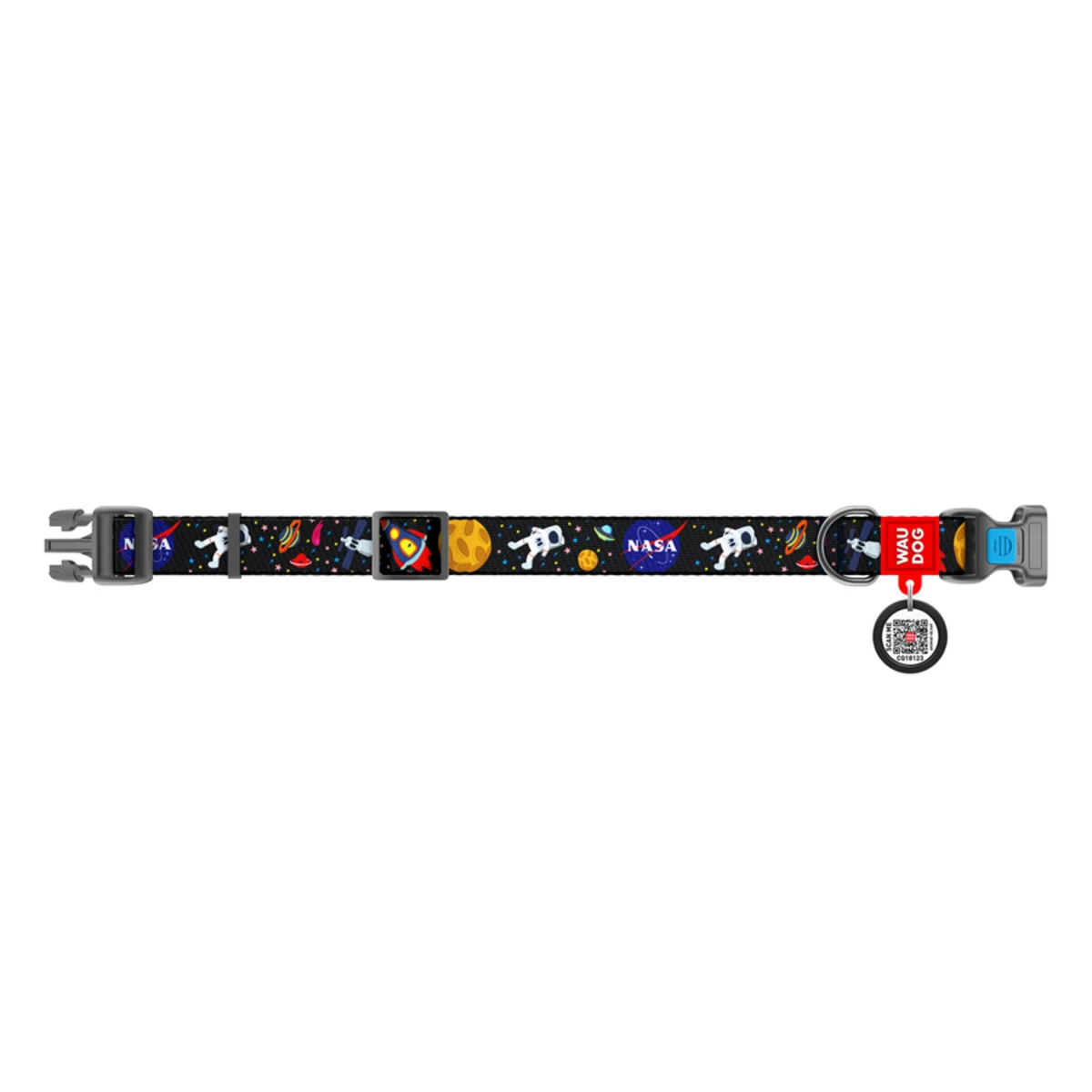 Нашийник для собак нейлоновий WAUDOG Nylon з QR паспортом, малюнок "NASA", пластиковий фастекс, Ш 25 мм, Дл 31-49 см