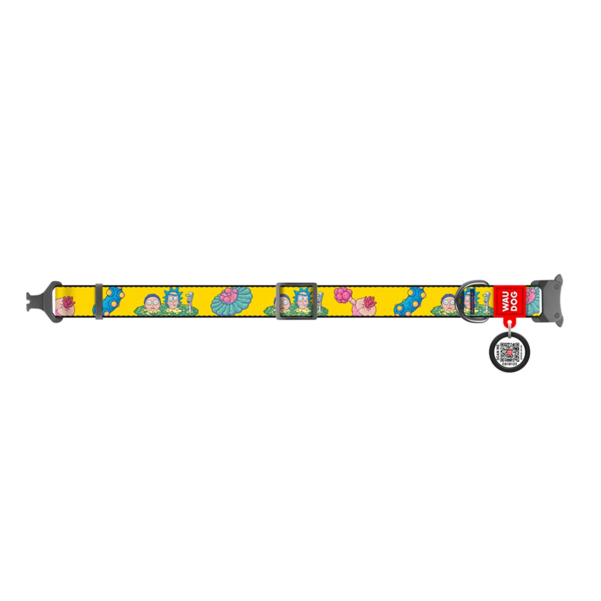Нашийник для собак нейлоновий WAUDOG Nylon з QR паспортом, малюнок "Рік і Морті 1", металевий пряжка-фастекс, M, Ш 20 мм, Дл 24-40 см