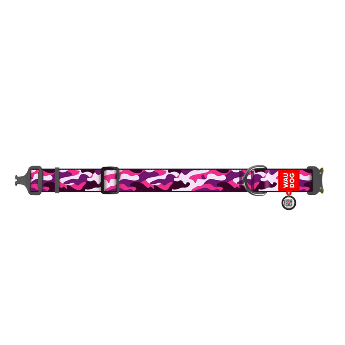 Нашийник для собак нейлоновий WAUDOG Nylon з QR паспортом, малюнок "Рожевий камуфляж", металевий фастекс, XXL, Ш 35 мм, Дл 43-70 см