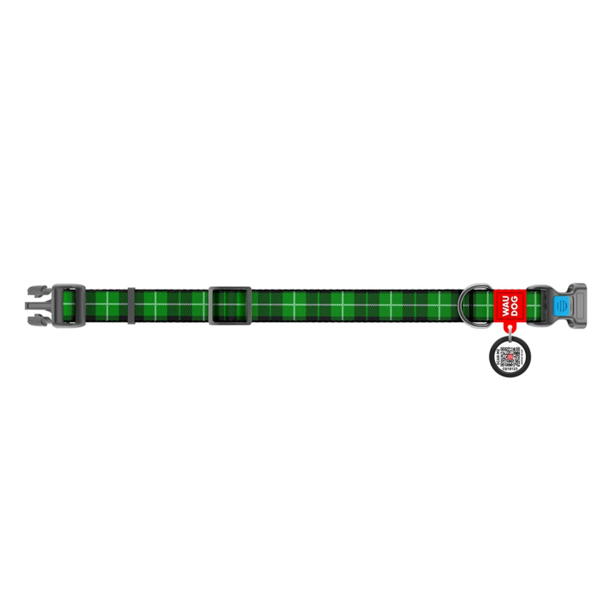 Нашийник для собак нейлоновий WAUDOG Nylon з QR паспортом, малюнок "Шотландка зелена", пластиковий фастекс, Ш 25 мм, Дл 35-58 см