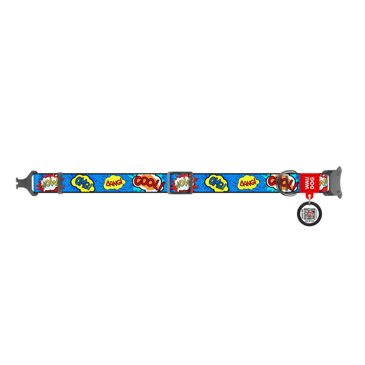 Нашийник для собак нейлоновий WAUDOG Nylon з QR паспортом, малюнок "ВАУ", металевий пряжка-фастекс, Ш 20 мм, Дл 24-40 см