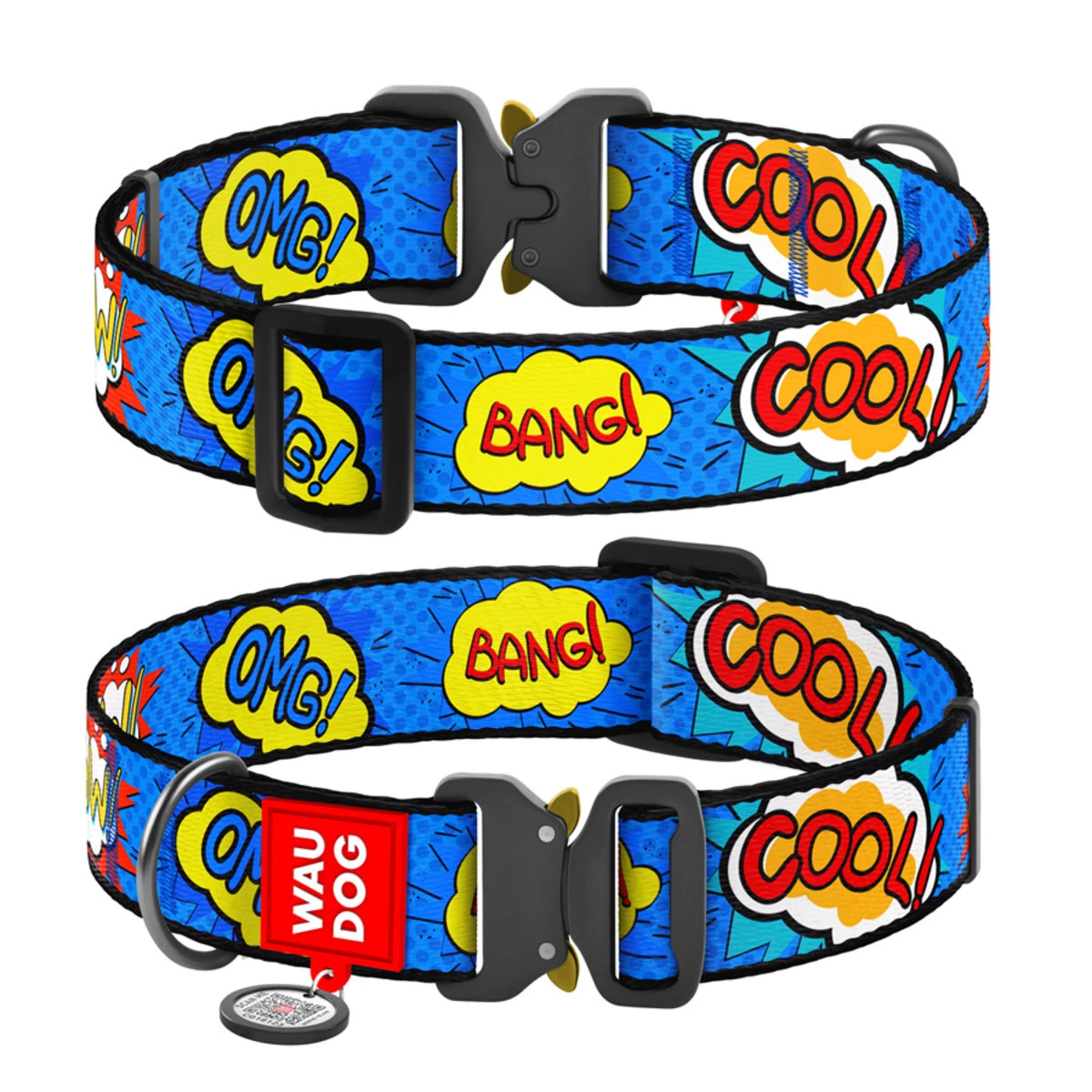 Нашийник для собак нейлоновий WAUDOG Nylon з QR паспортом, малюнок "ВАУ", металевий пряжка-фастекс, XXL, Ш 35 мм, Дл 43-70 см