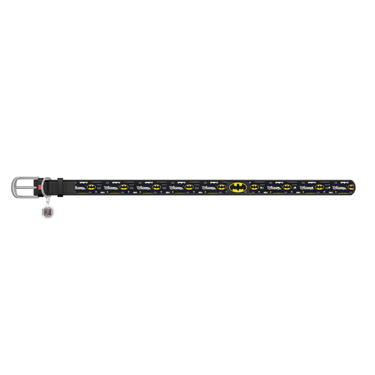 Нашийник для собак шкіряний WAUDOG Design з QR паспортом, малюнок "Бетмен3", Ш 15 мм, Дл 26-35 см, чорний