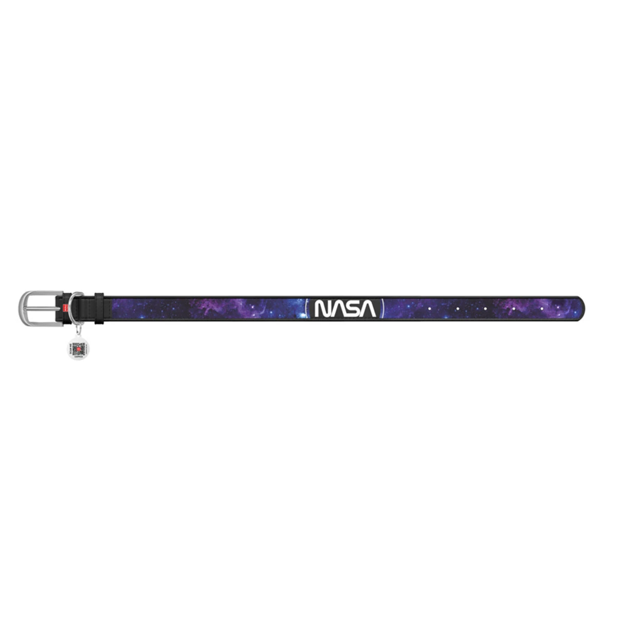 Нашийник для собак шкіряний WAUDOG Design з QR паспортом, малюнок "NASA21", XS, Ш 12 мм, Дл 21-29 см, чорний