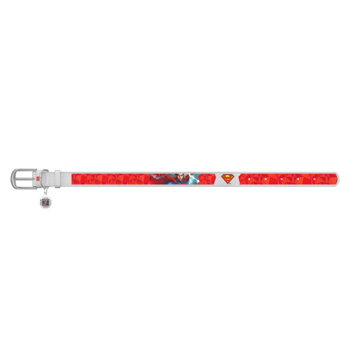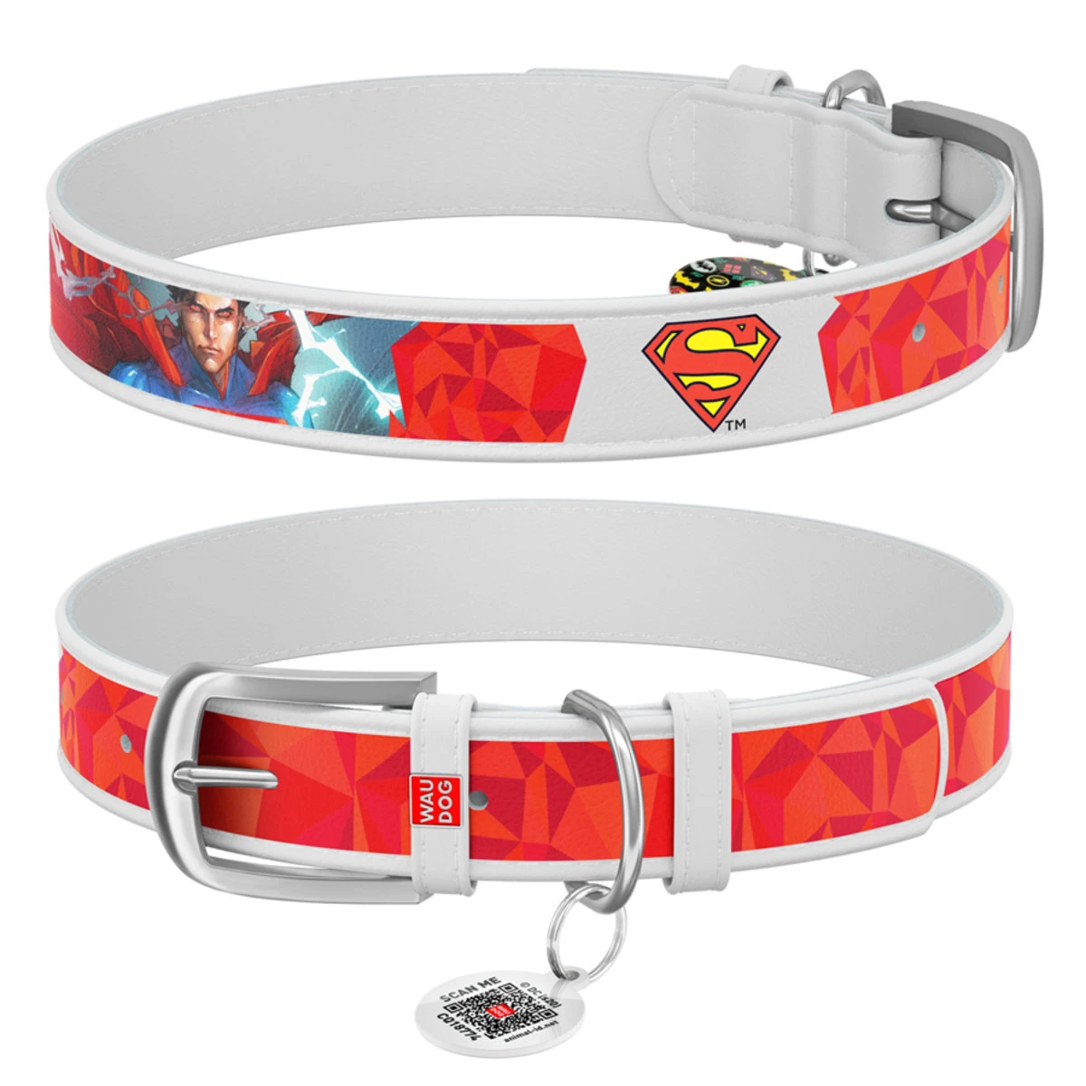 Нашийник для собак шкіряний WAUDOG Design з QR паспортом, малюнок "Супермен1", Ш 20 мм, Дл 29-38 см, білий