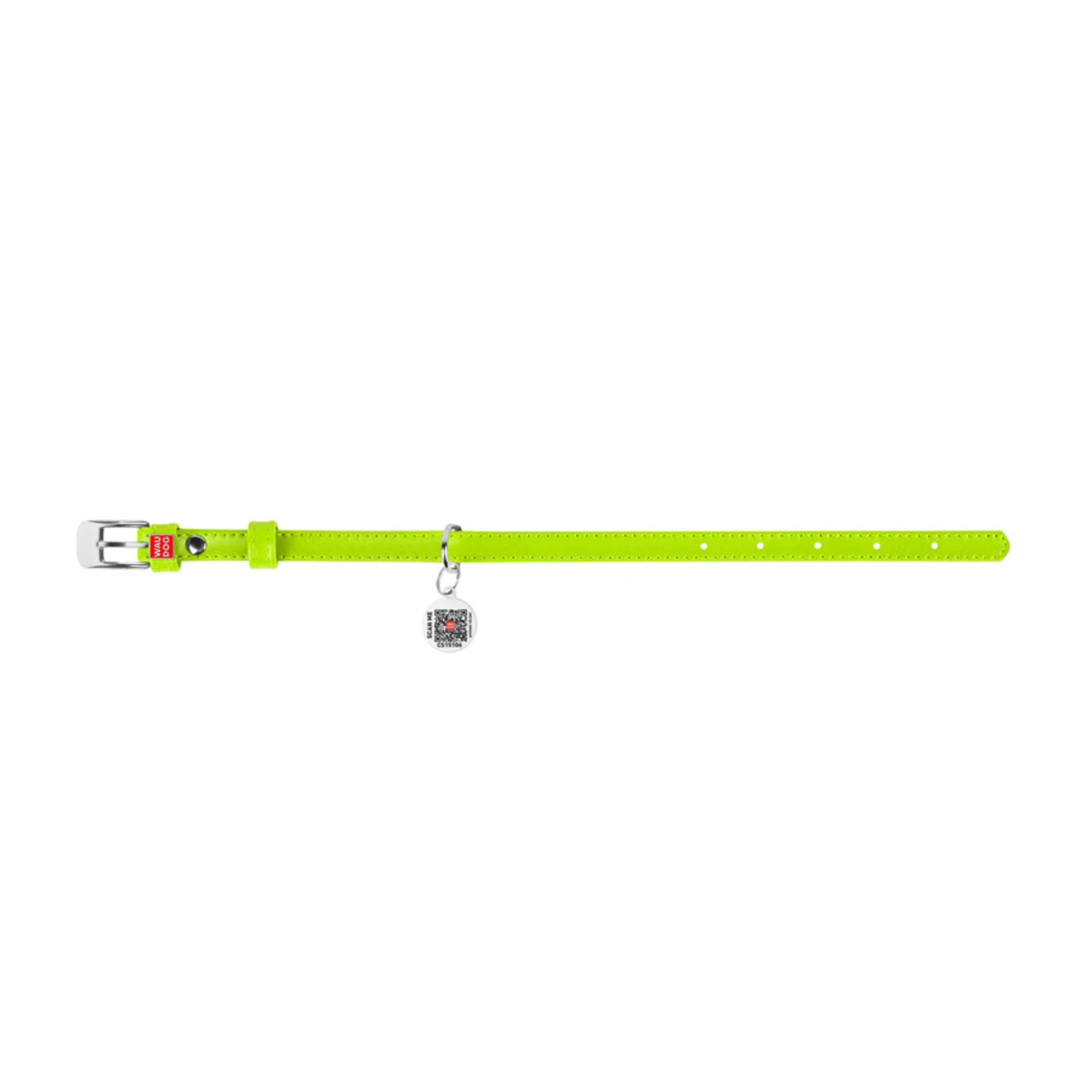 Нашийник для собак шкіряний WAUDOG Glamour з QR паспортом, без прикрас, Ш 15 мм, Дл 27-36 см, салатовий