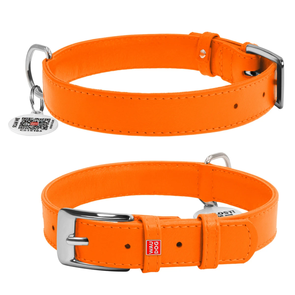 Нашийник для собак шкіряний WAUDOG Glamour з QR паспортом, без прикрас, Ш 20 мм, Дл 30-39 см, оранжевий