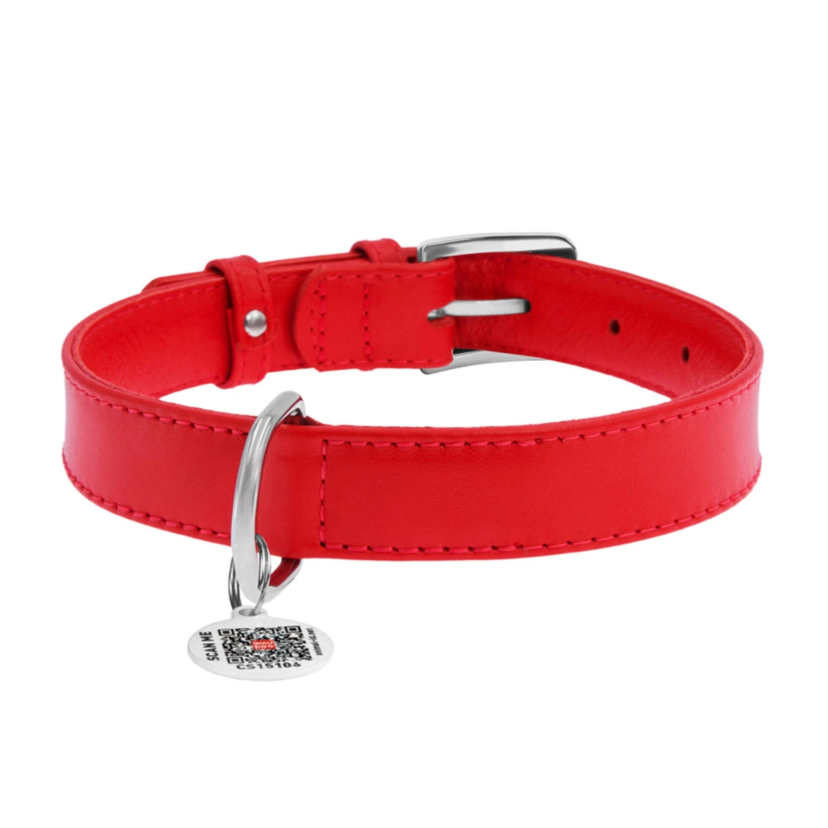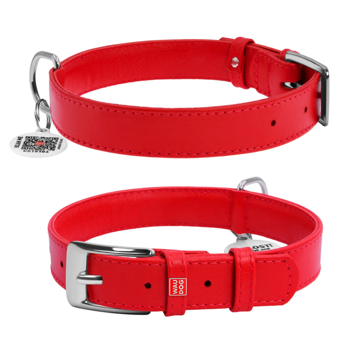 Нашийник для собак шкіряний WAUDOG Glamour з QR паспортом, без прикрас, Ш 25 мм, Дл 38-49 см, червоний