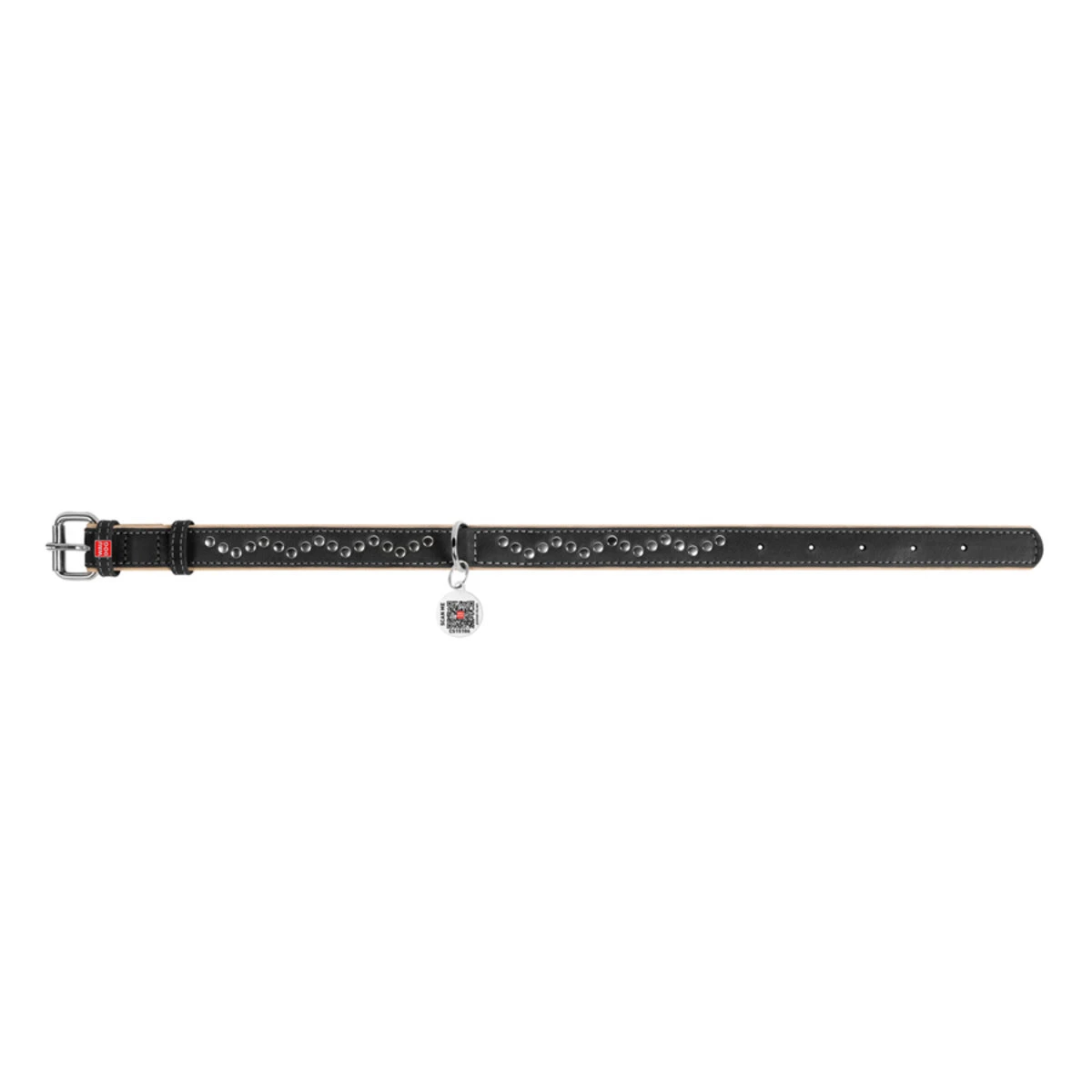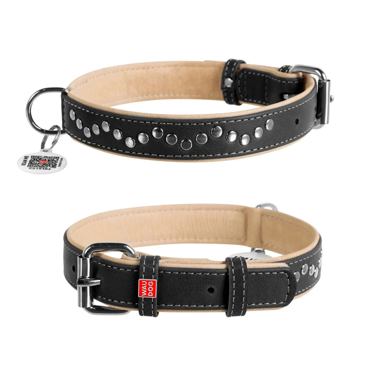 Нашийник для собак шкіряний WAUDOG Soft з QR паспортом, металеві прикраси, Ш 25 мм, Дл 38-49 см
