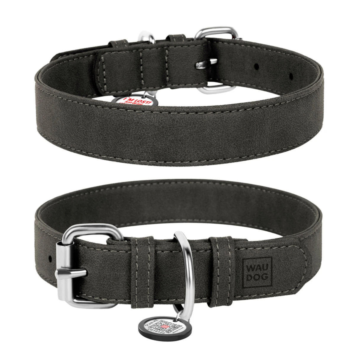 Нашийник для собак з штучної шкіри WAUDOG Eco з QR паспортом, Ш 15 мм, Дл 27-36 см, сірий