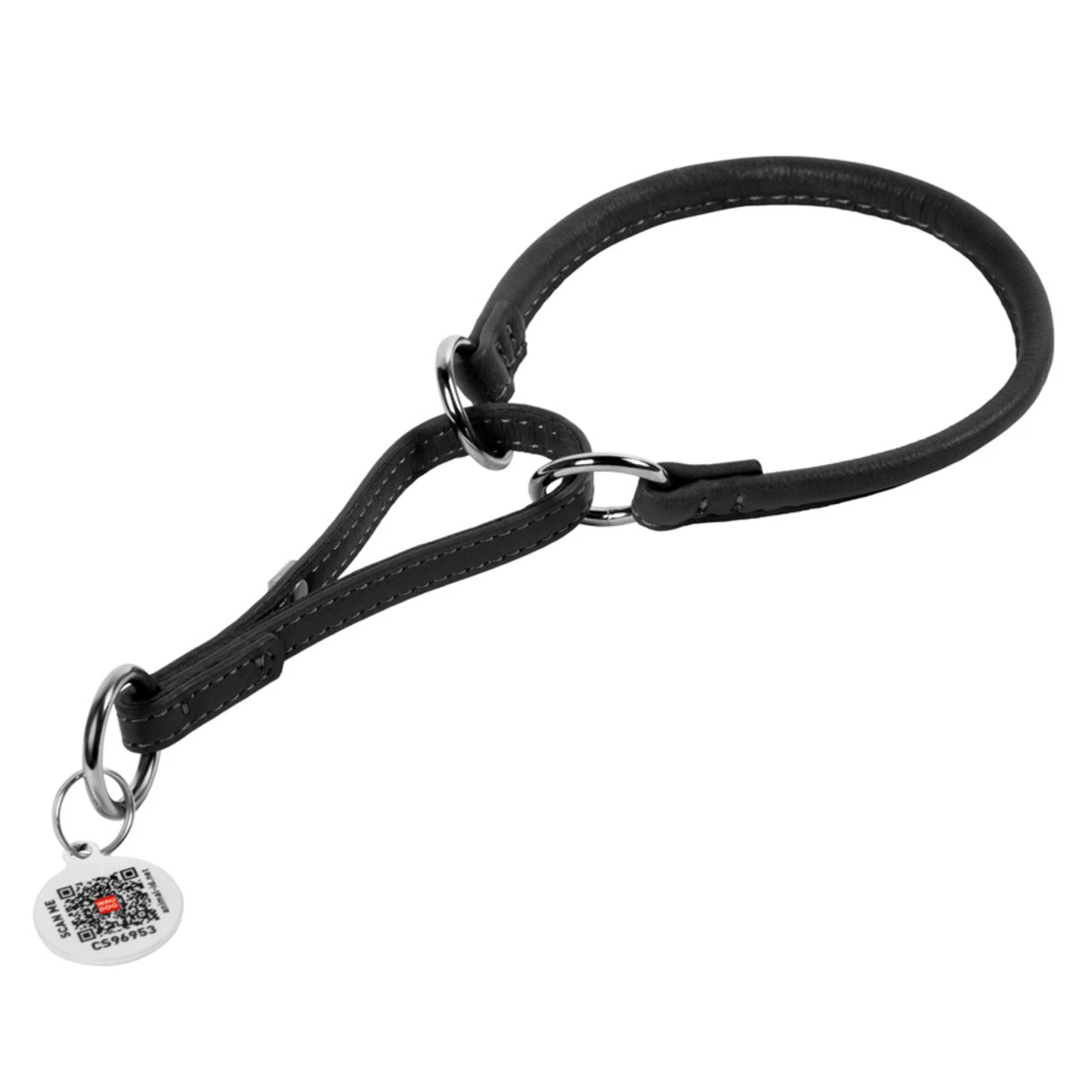Нашийник-удавка для собак шкіряний WAUDOG Soft з QR паспортом, круглий, Д 10 мм, Дл 41-50 см, чорний