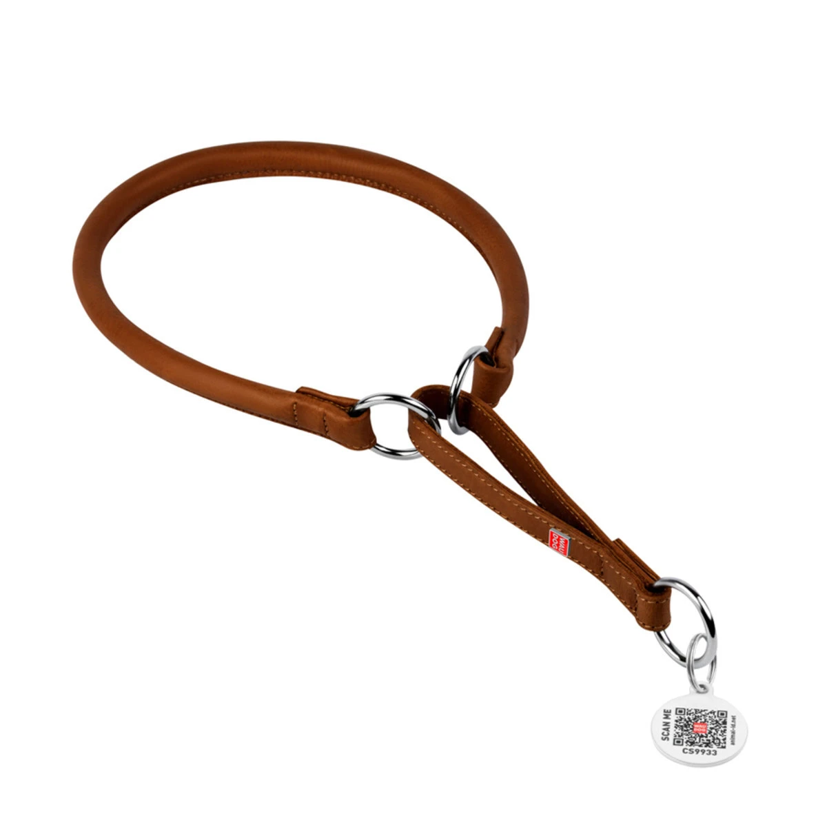 Нашийник-удавка для собак шкіряний WAUDOG Soft з QR паспортом, круглий, Д 13 мм, Дл 51-60 см, коричневий