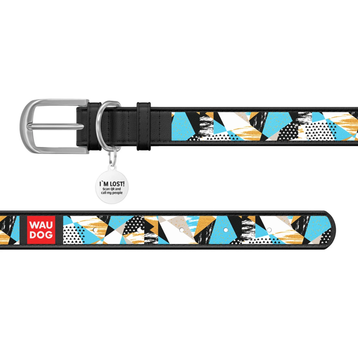 Нашийник WAUDOG Design з малюнком "Абстракція", преміум шкіра, металевий пряжка (ширина 20 мм, довжина 30-39 см), чорний