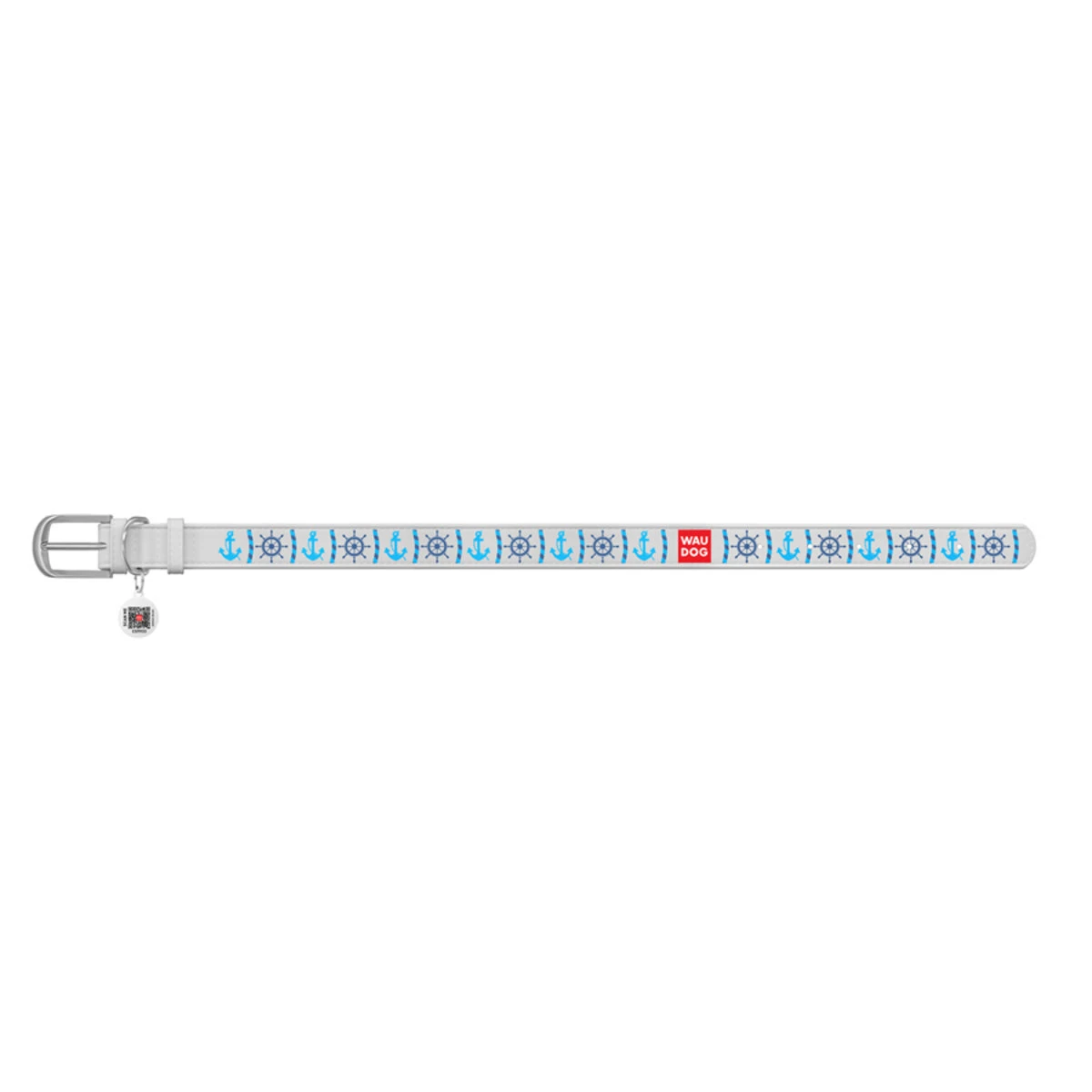 Нашийник WAUDOG Design з малюнком "Якорі", преміум шкіра, металевий пряжка (ширина 25 мм, довжина 38-49 см), білий