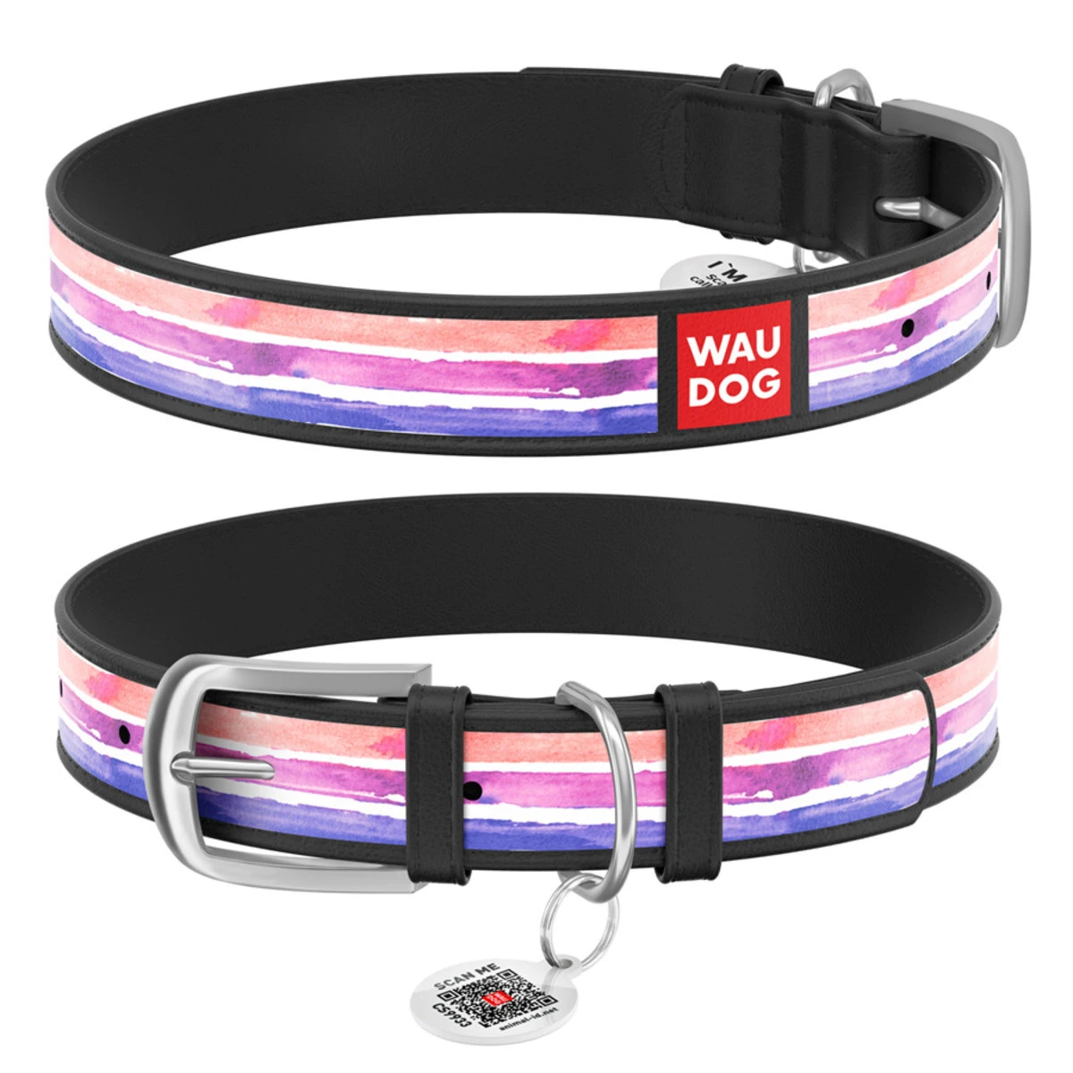 Нашийник WAUDOG Design з малюнком "Акварельні смужки 2", преміум шкіра, металевий пряжка (ширина 12 мм, довжина 21-29 см), чорний
