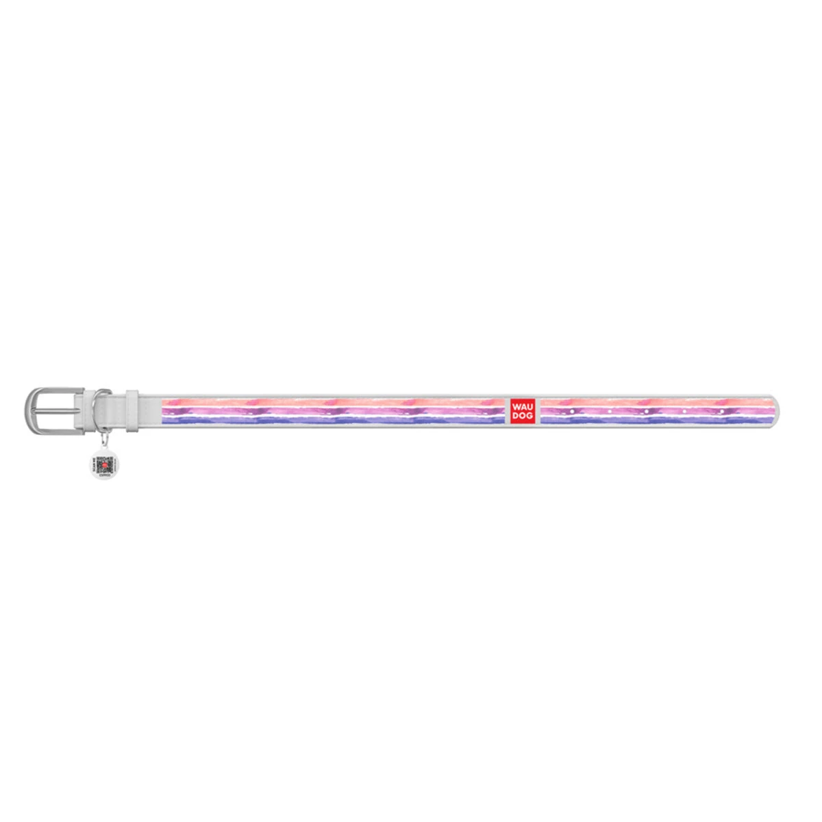 Нашийник WAUDOG Design з малюнком "Акварельні смужки 2", преміум шкіра, металевий пряжка (ширина 15 мм, довжина 27-36 см), білий