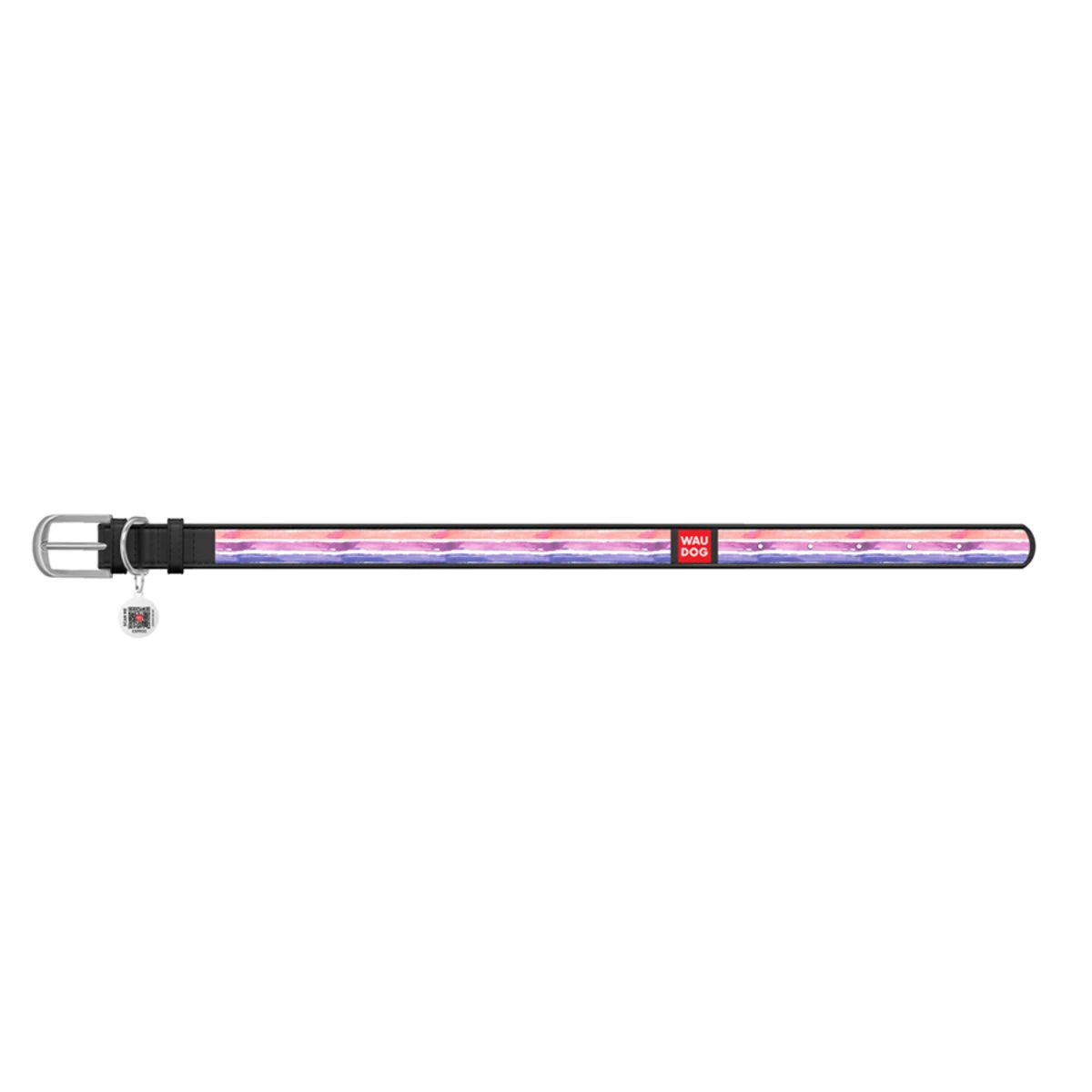 Нашийник WAUDOG Design з малюнком "Акварельні смужки 2", преміум шкіра, металевий пряжка (ширина 35 мм, довжина 46-60 см), чорний