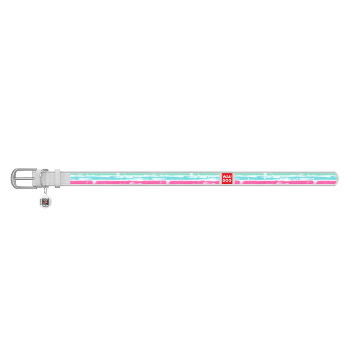 Нашийник WAUDOG Design з малюнком "Акварельні смужки", преміум шкіра, металевий пряжка (ширина 12 мм, довжина 21-29 см), білий