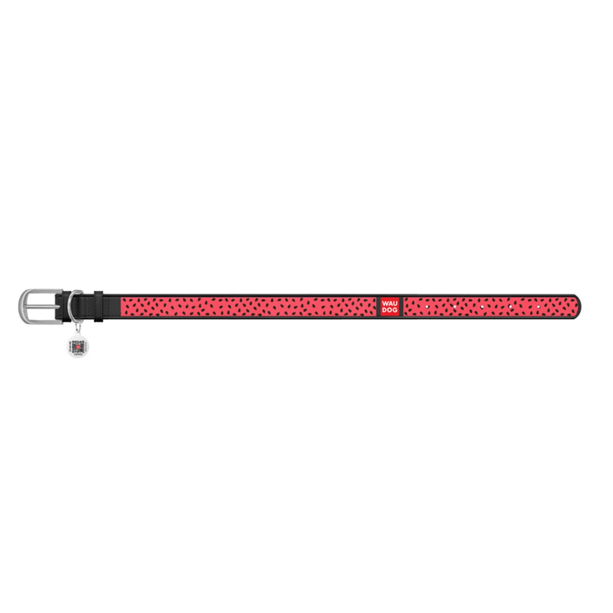 Нашийник WAUDOG Design з малюнком "Арбуз", преміум шкіра, металевий пряжка (ширина 25 мм, довжина 38-49 см), чорний