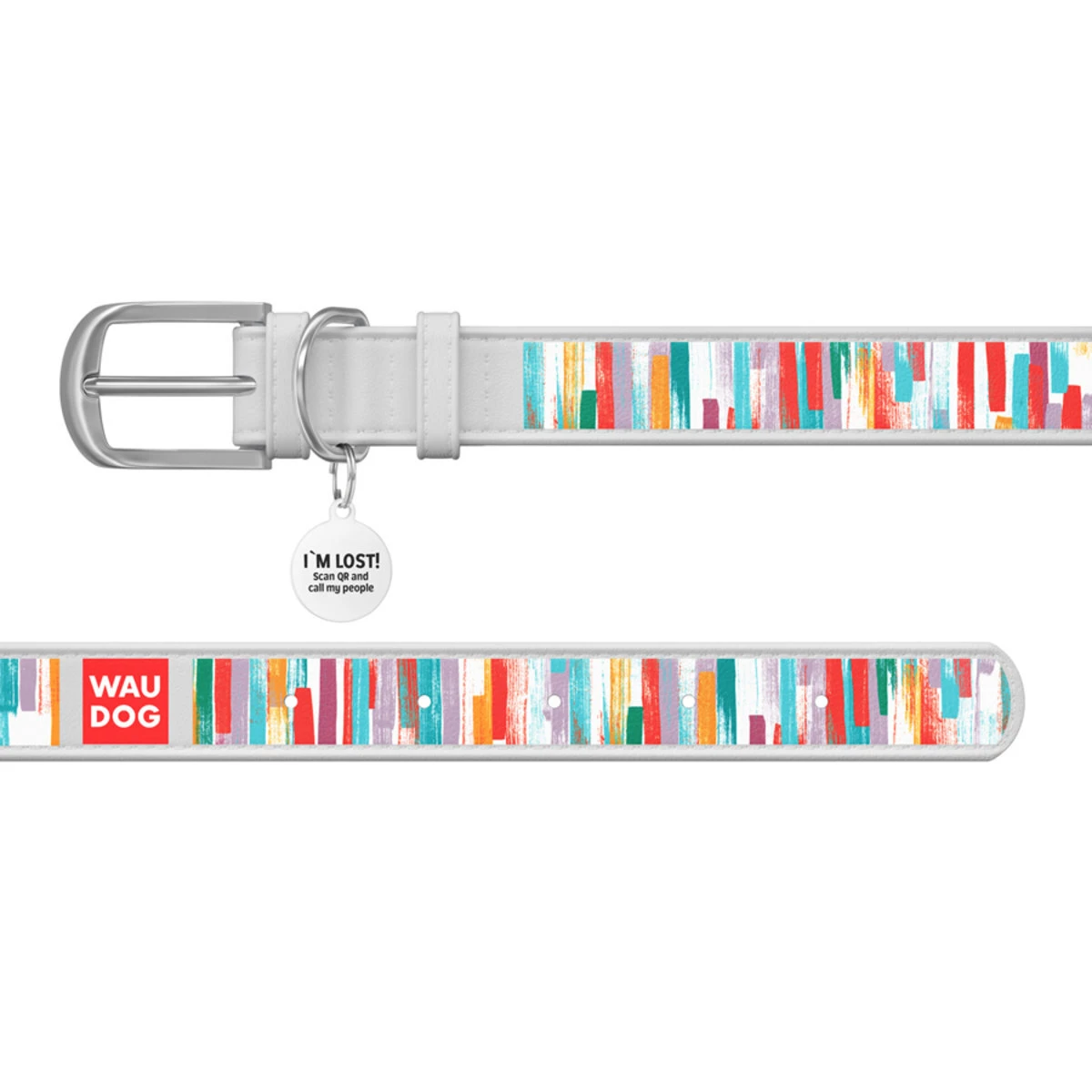 Нашийник WAUDOG Design з малюнком "Яскраві смужки", преміум шкіра, металевий пряжка (ширина 12 мм, довжина 19-25 см), білий