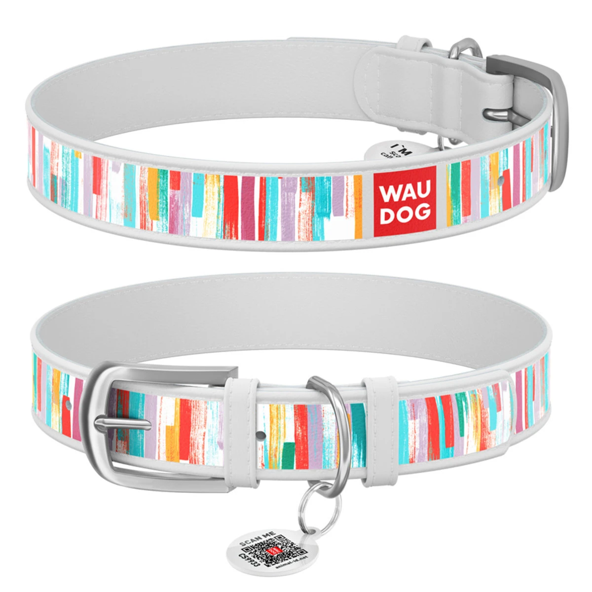 Нашийник WAUDOG Design з малюнком "Яскраві смужки", преміум шкіра, металевий пряжка (ширина 12 мм, довжина 21-29 см), білий