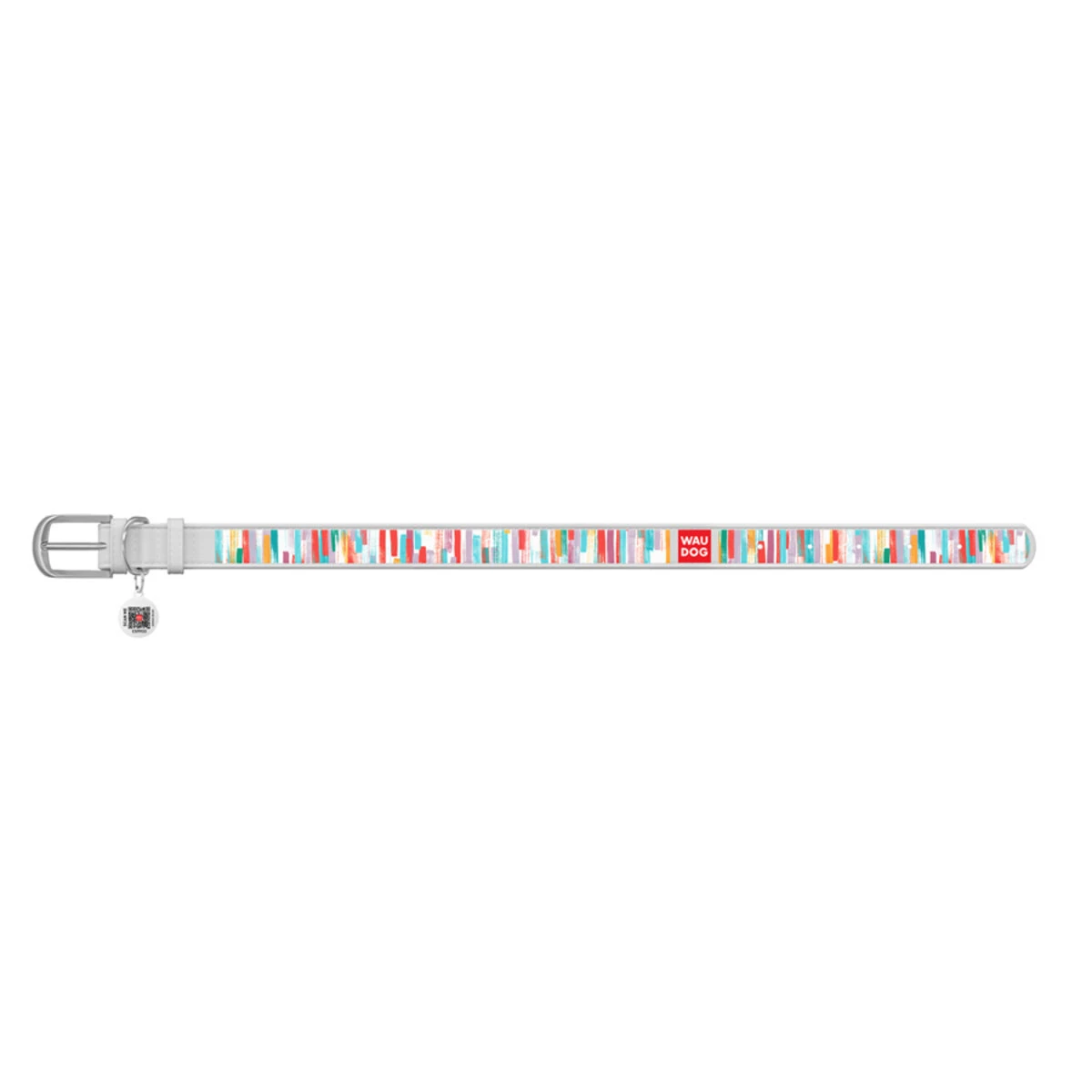 Нашийник WAUDOG Design з малюнком "Яскраві смужки", преміум шкіра, металевий пряжка (ширина 35 мм, довжина 46-60 см), білий