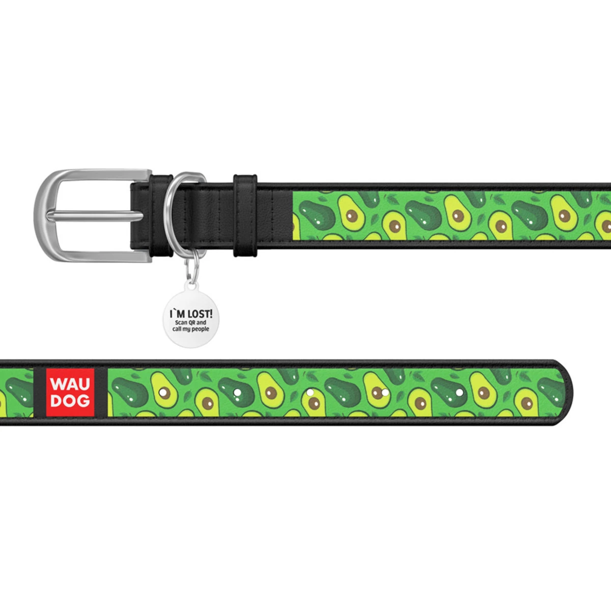 Нашийник WAUDOG Design з малюнком "Авокадо", преміум шкіра, металевий пряжка (ширина 12 мм, довжина 19-25 см), чорний
